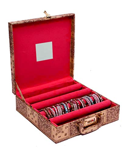 Kuber Industries Wooden Bangle Box For Woman|4 Rod Bangle Storage Box Organizer|Transparent Window|RED