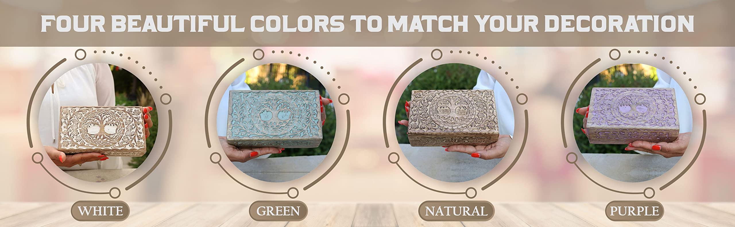 DESIGN: This solid combination Mango and recycled wooden box features intricately carved deep Tree Of Life with floral design