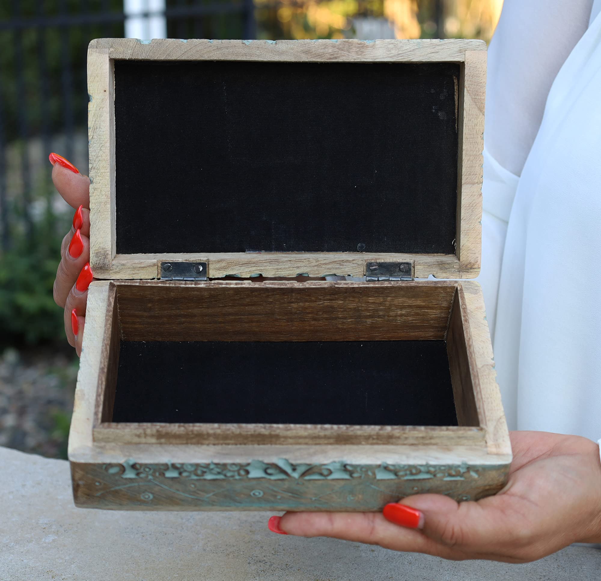 DURABLE WOOD: Handcrafted from combination eco-sustainable mango wood and Recycled wood. It's recognized as tough and water resistant. Pure natural wood is used for this box. Hand carved and finished variations in knots grain detailing mineral deposits an