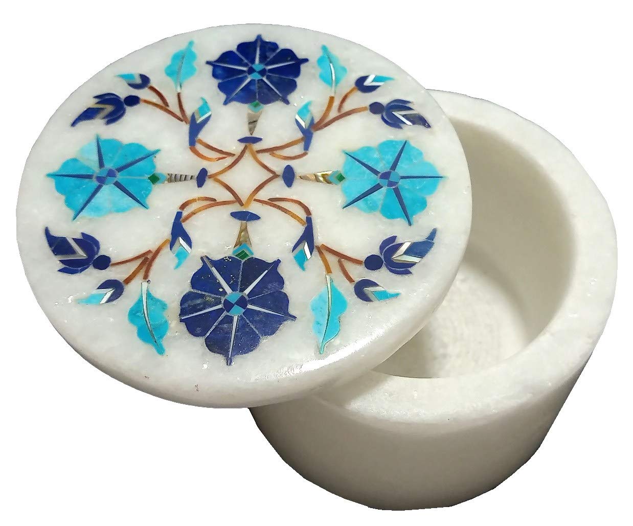 Design: Floral With Tree Of Life. To maintain this Simple Wash with Soap & Water Clean with Dry Cloth. Stone Used to Inlaid in the Box are : Turquoise - Light Blue Mother of Pearl - White. Lapis-Lazuli - Dark Blue. Jasper - Brown.It is an art piece which will be a beauty & the conversation piece at home. We are himself manufacture of this product so we do custom design and bulk order also.