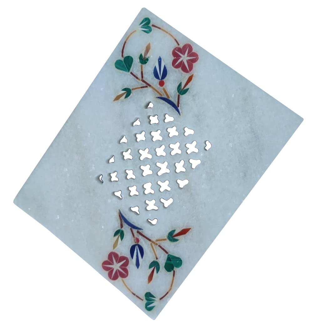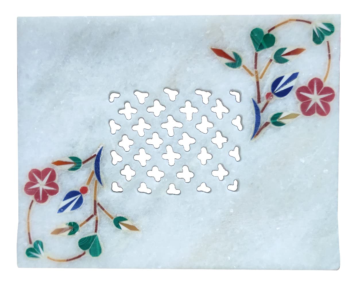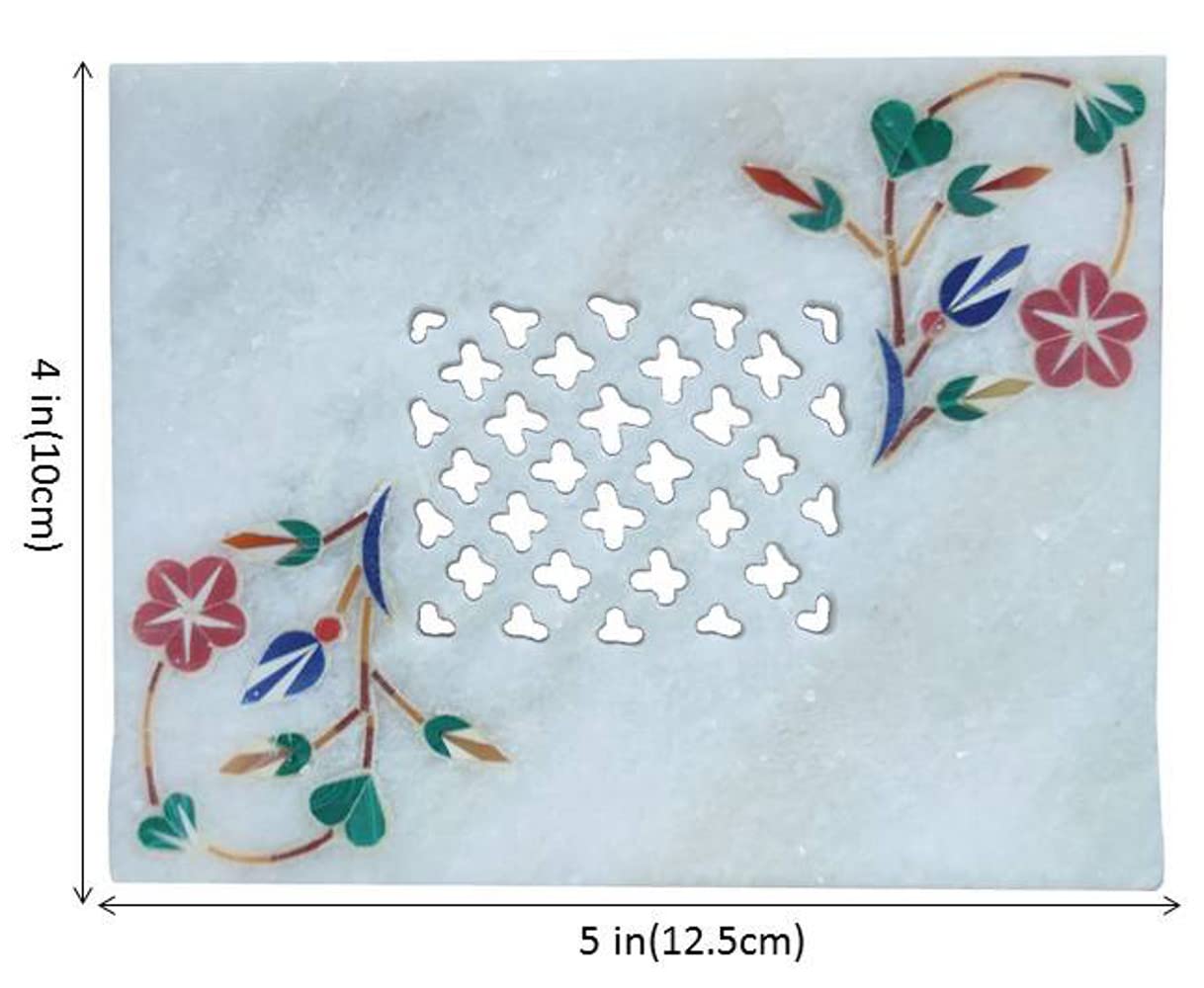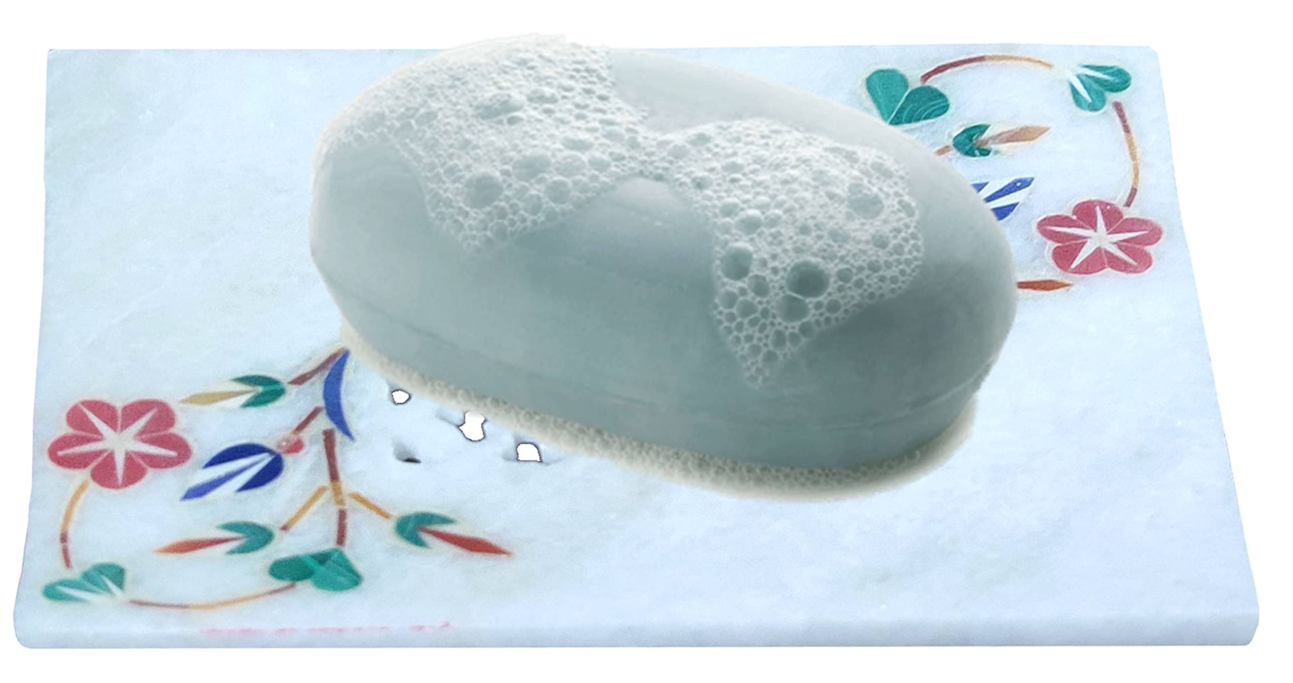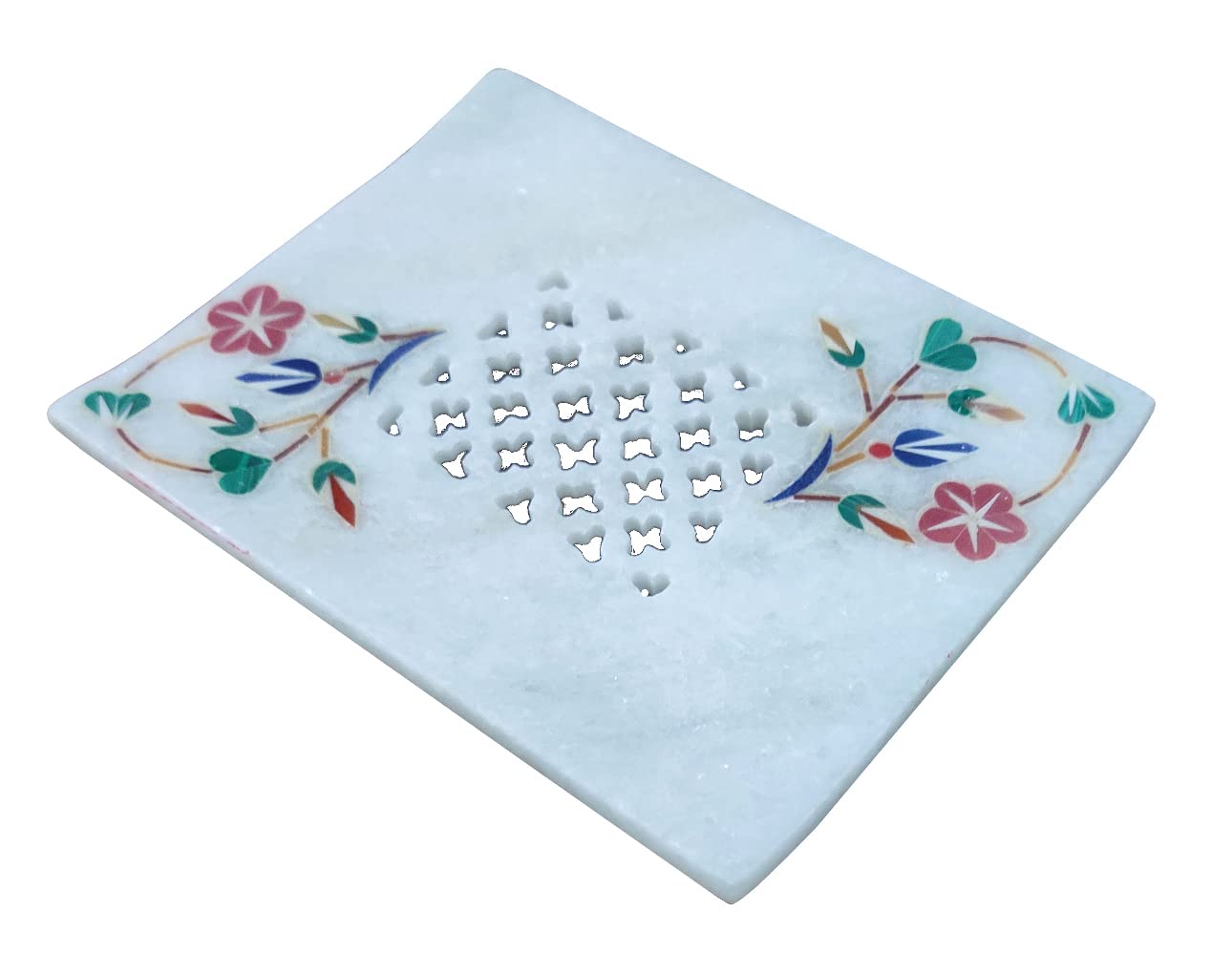 MARBLE INLAY ART AGRA - PACCHIKARI Marble Inlay Work Soapdish: Bathroom Kitchen Soap Bar Holder (12468B)