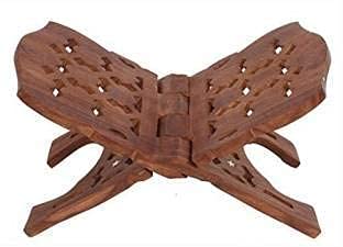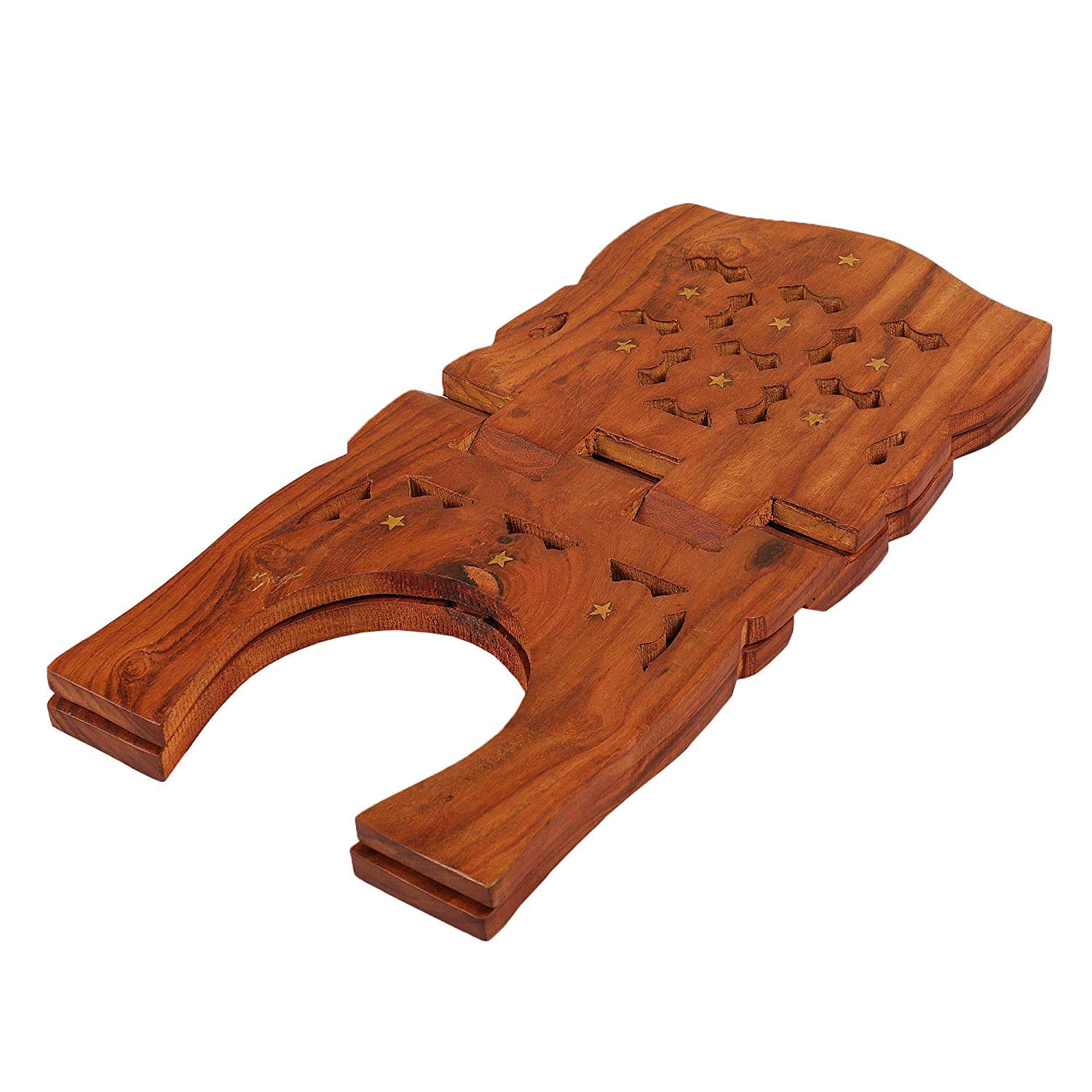 SAHARANPUR HANDICRAFTS Wooden Hand Carved Holy Book Stand Patak For Quran Bible Gita & Reading Rehal Stand Sheesham Wood One Pic Beautifull Jally Work & Brass Work (13'' inch)