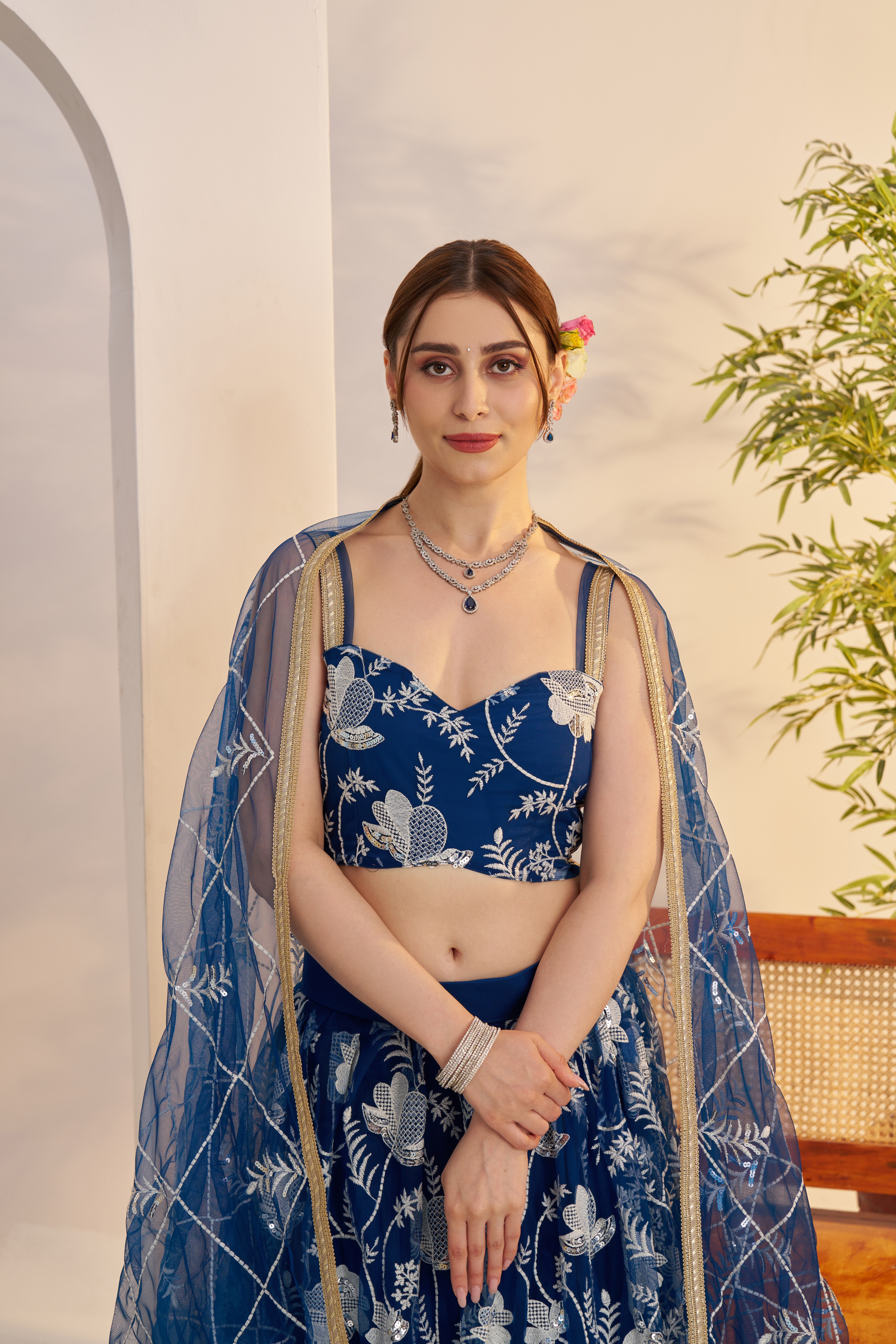 • Lehenga features a well-structured flare that creates a stunning silhouette while ensuring comfort.