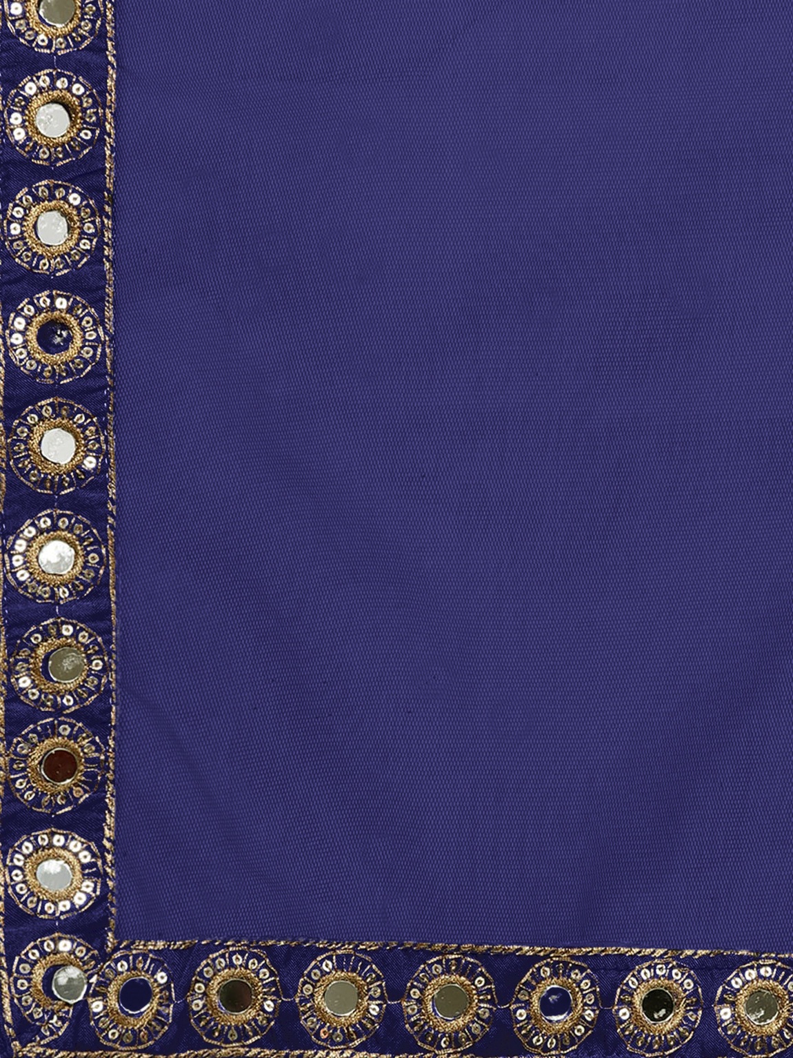 Elevate your ethnic look with this navy blue taffeta lehenga featuring mirror work. Designed for festive occasions and celebrations, it offers a graceful flow and timeless appeal.Crafted from lightweight taffeta fabric with a semi-stitched finish, this lehenga ensures comfort and easy customization. Dry clean recommended.