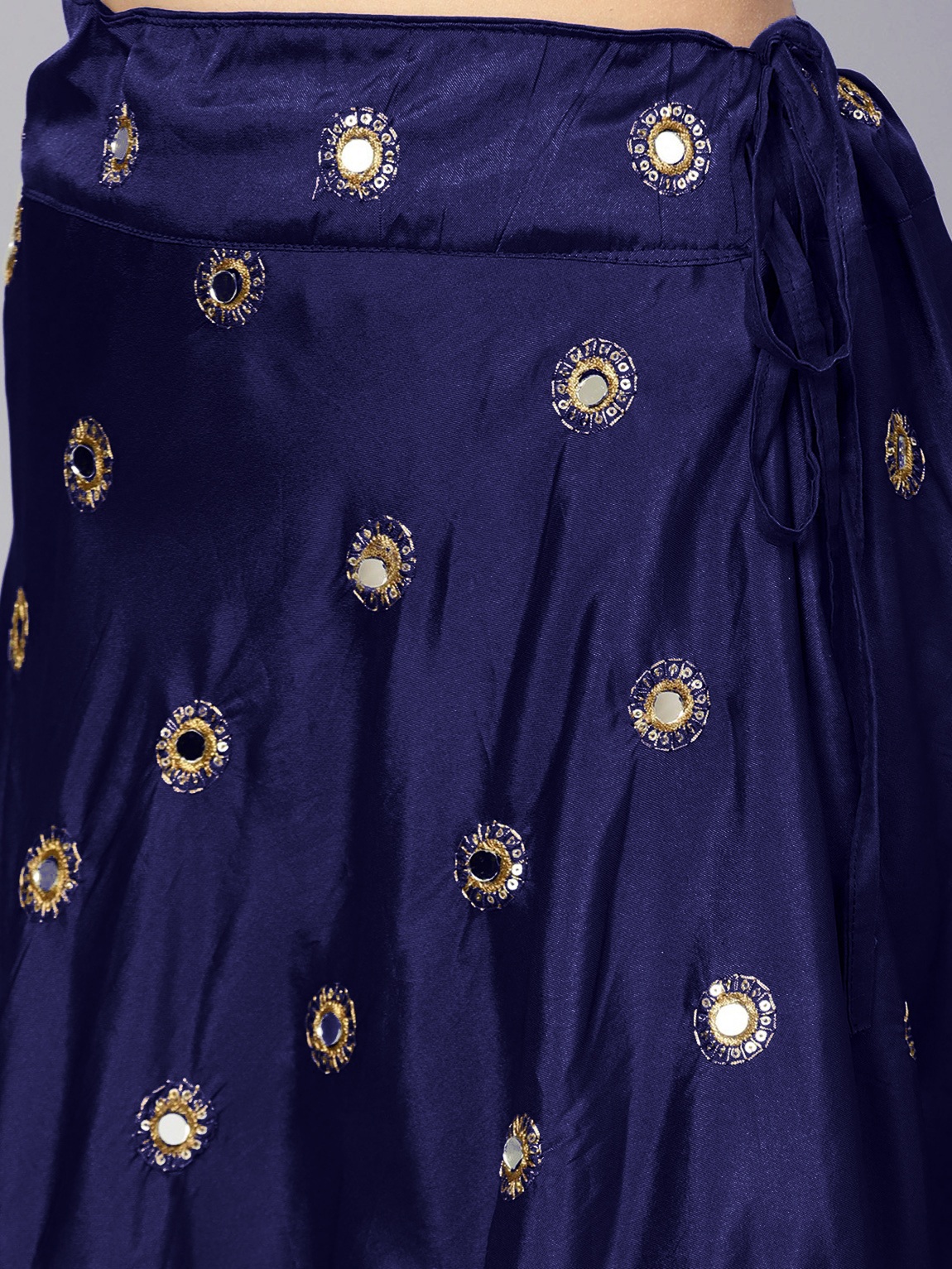 Womens Navy Blue Taffeta Mirror Lehenga Set