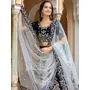 Womens Navy Blue Velvet Zari Work Lehenga Set