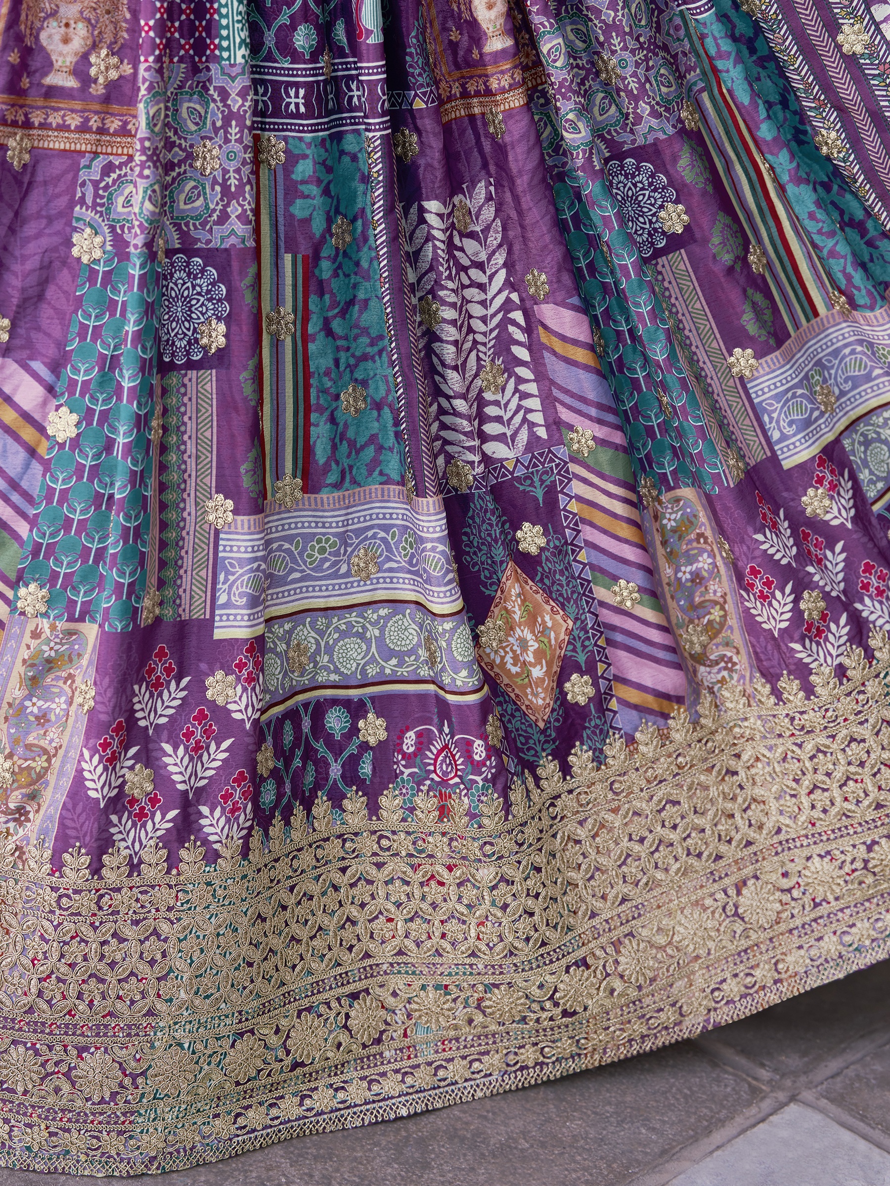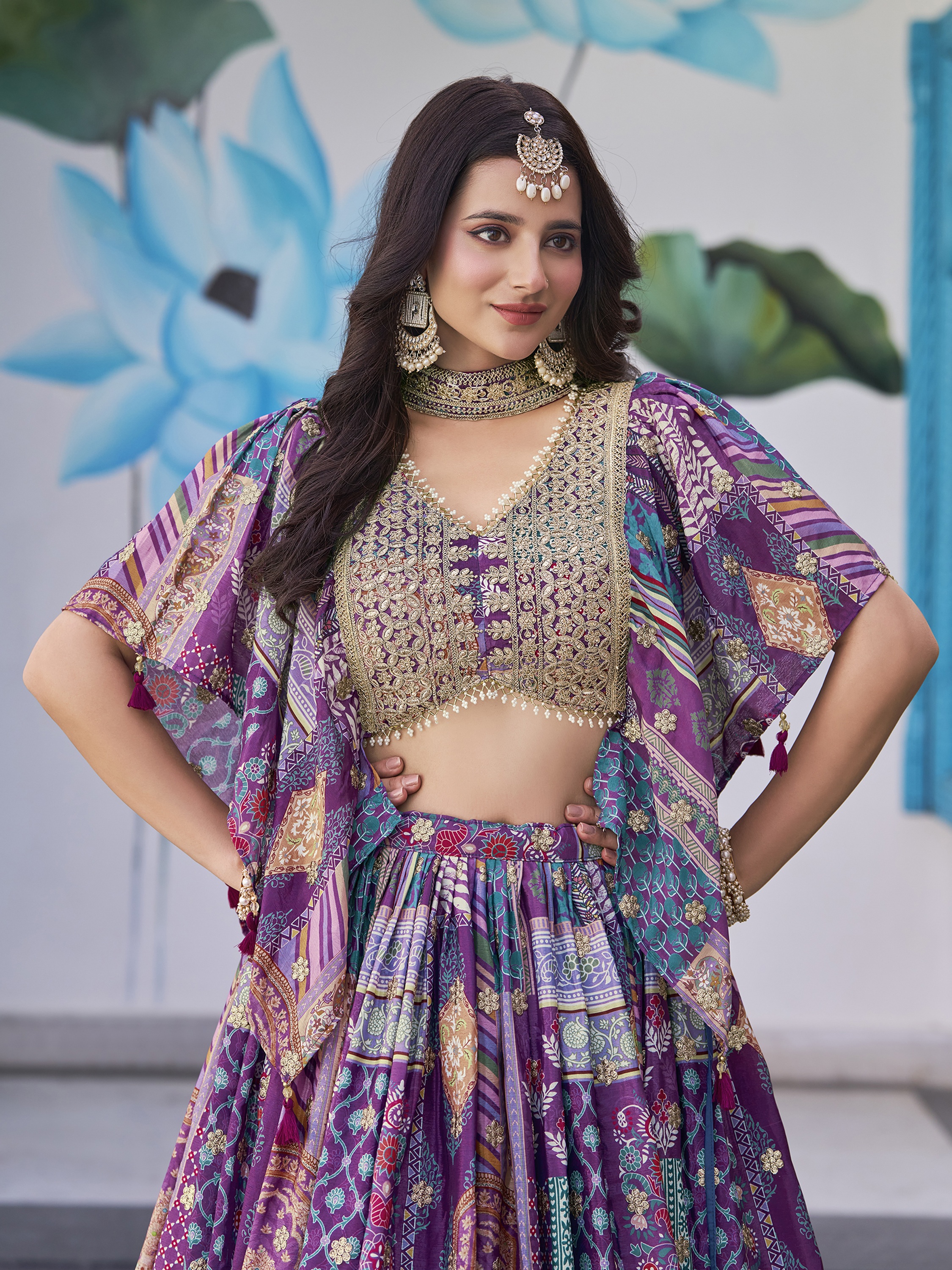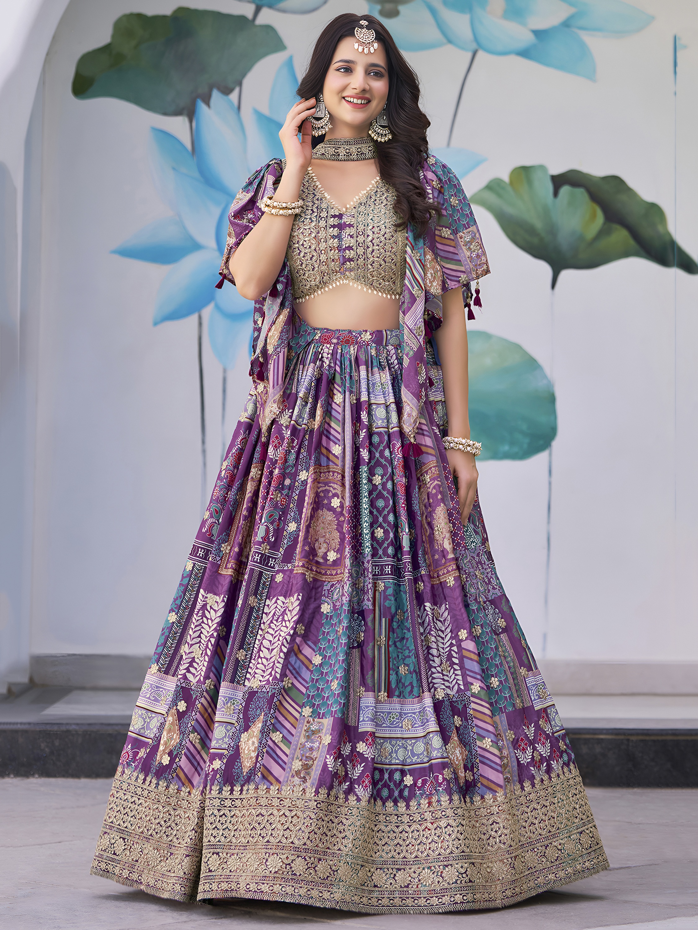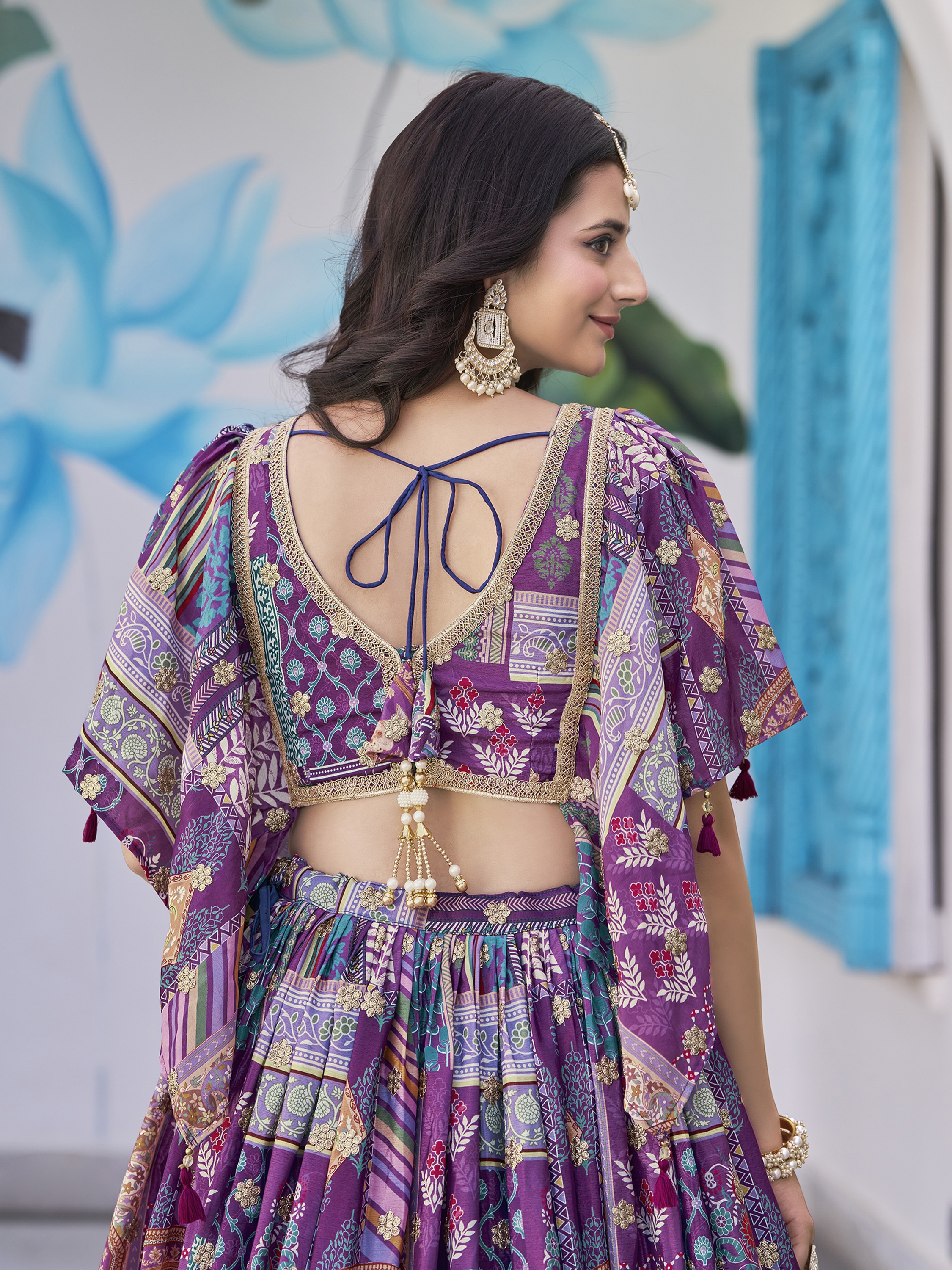 Elevate your ethnic look with this purple chinnon lehenga featuring dori embroidery work. Designed for festive occasions and celebrations, it offers a graceful flow and timeless appeal.Crafted from lightweight chinnon fabric with a semi-stitched finish, this lehenga ensures comfort and easy customization. Dry clean recommended.