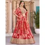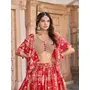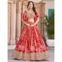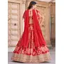 Womens Red Chinnon Dori Embroidery Lehenga Set