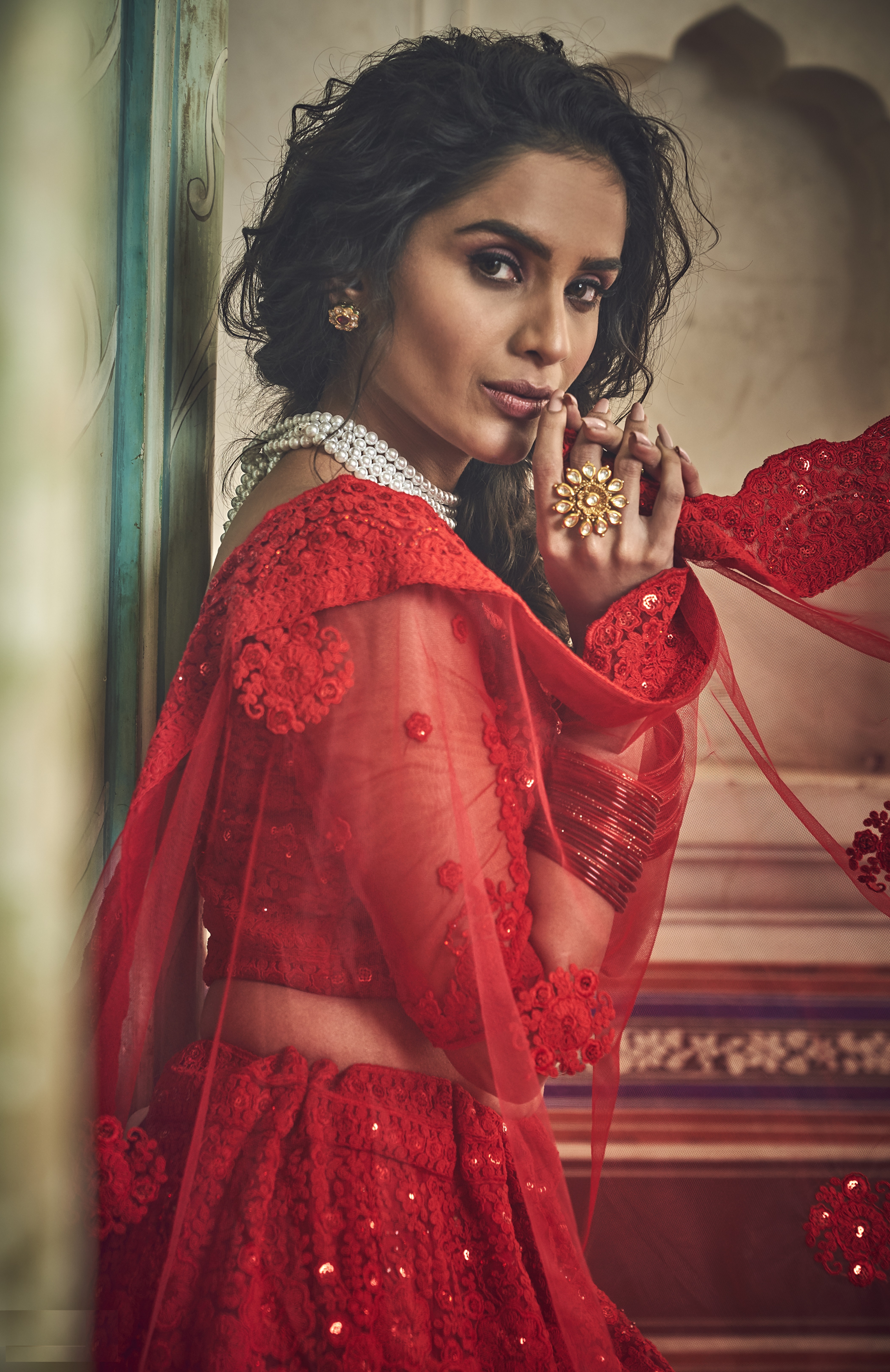 Elevate your ethnic look with this red net lehenga featuring thread embroidery work. Designed for festive occasions and celebrations, it offers a graceful flow and timeless appeal.Crafted from lightweight net fabric with a semi-stitched finish, this lehenga ensures comfort and easy customization. Dry clean recommended.