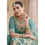 Elevate your ethnic look with this turquoise net lehenga featuring zari work work. Designed for festive occasions and celebrations, it offers a graceful flow and timeless appeal.Crafted from lightweight net fabric with a semi-stitched finish, this lehenga ensures comfort and easy customization. Dry clean recommended.