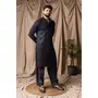 Black Color Beautiful Thread Embroidery Work Rayon Fabric Ceremonial Men's Kurta Payjama