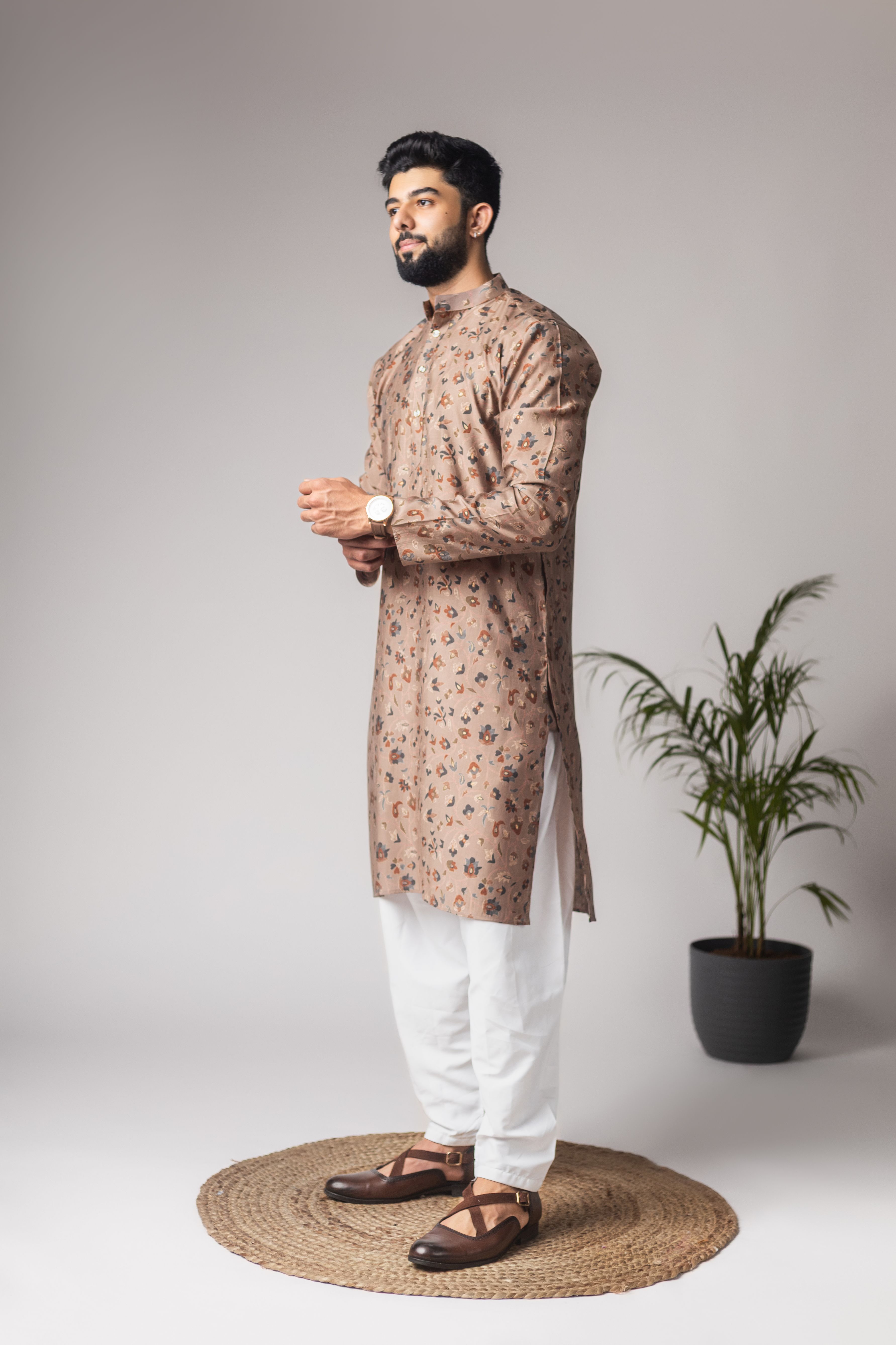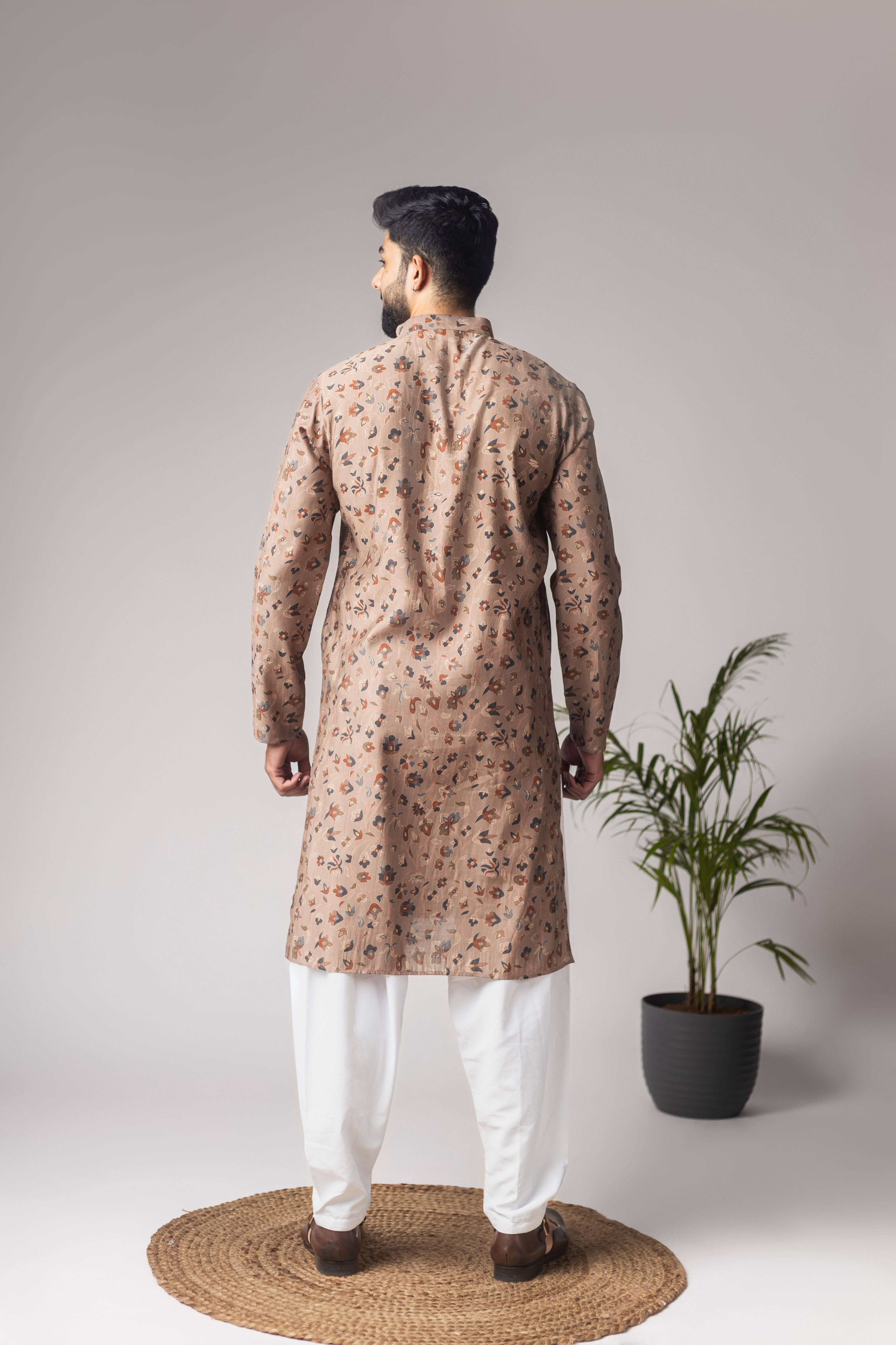 Brown Color Modal Silk Fabric Designer Printed Festive Wear Men's Kurta Payjama