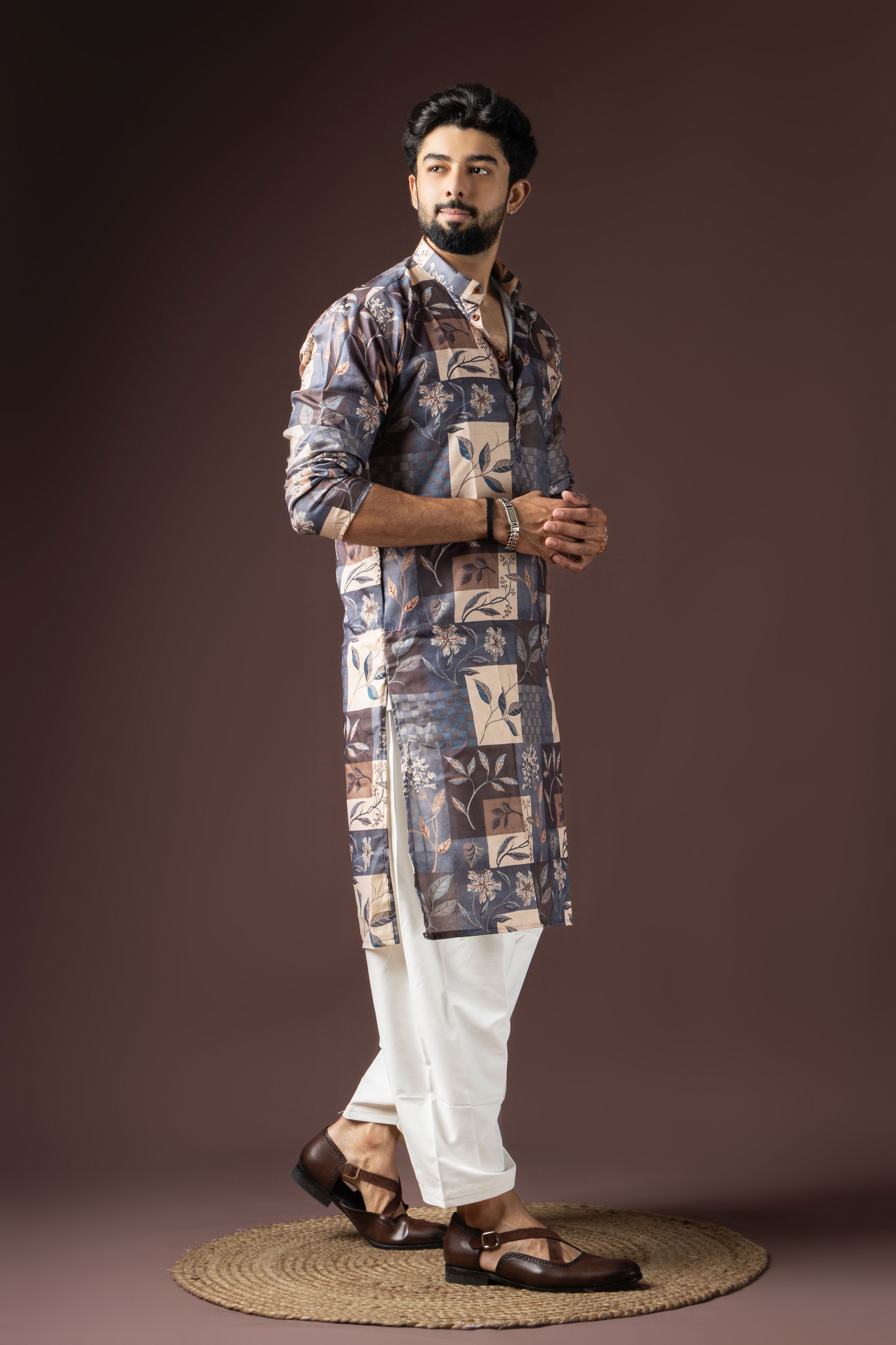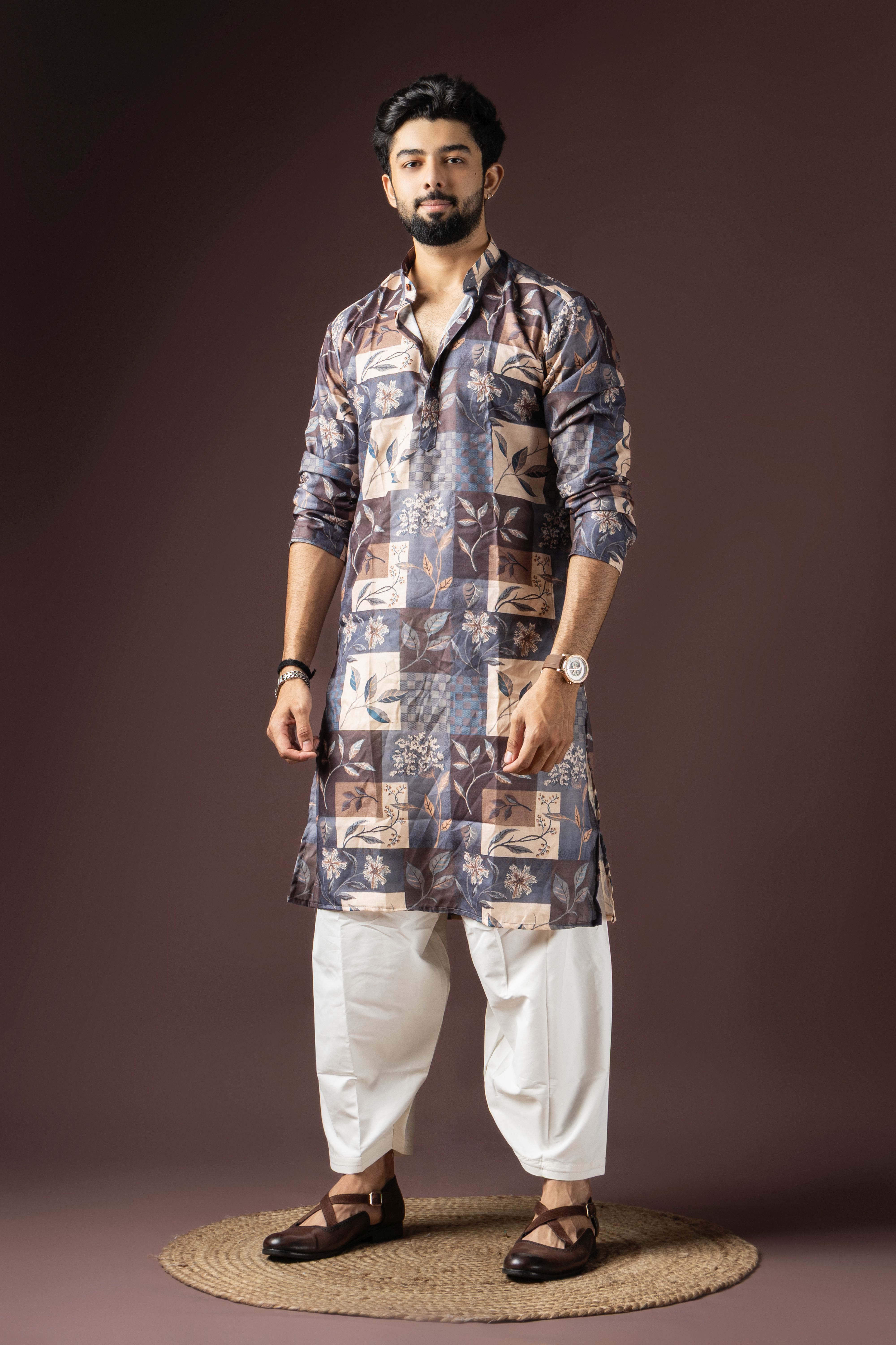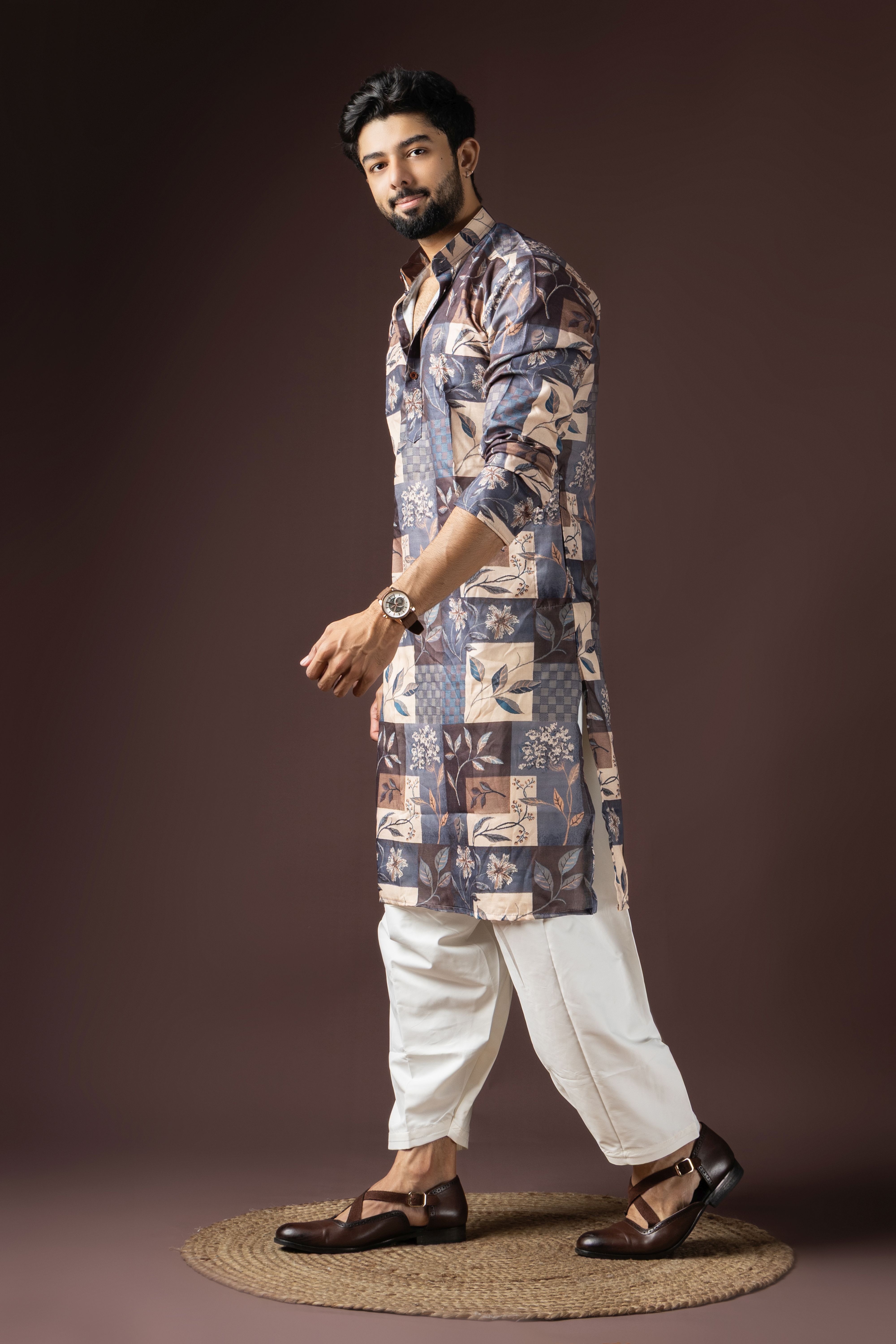 Multi Color Beautiful Printed Blended Cotton Fabric Ceremonial Men's Kurta Payjama