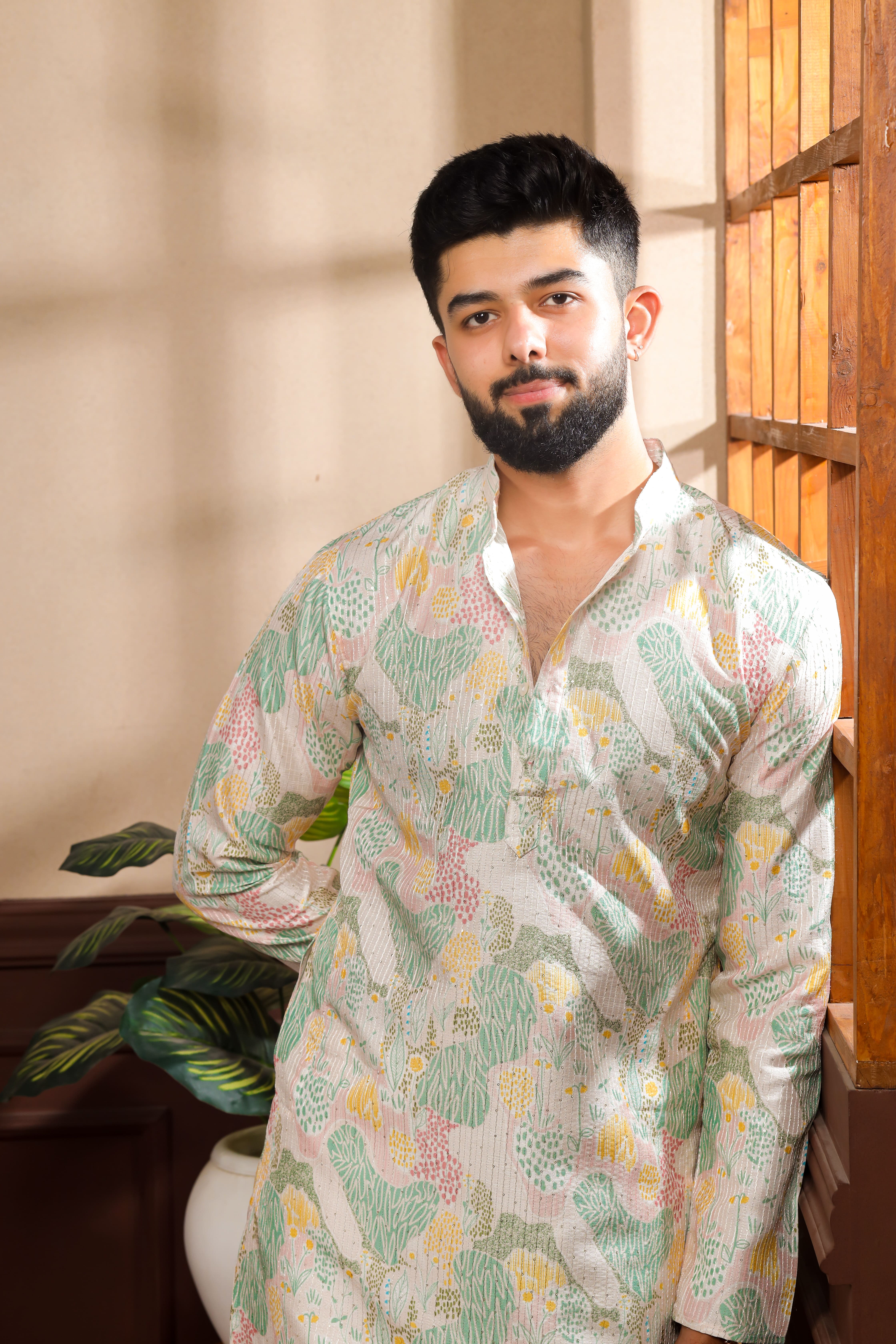 Multy Color Beautiful Art Silk Fabric Smart Print Designer Kurta Payjama