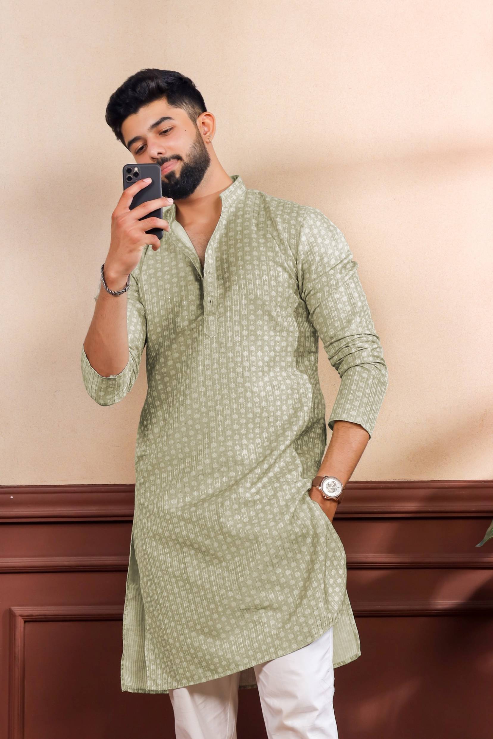 Pista Color Beautiful Art Silk Fabric Smart Print Designer Kurta Payjama