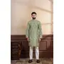 Pista Color Ethnic Woven Patta With Digital Printed Ceremonial Kurta Payjama For Men's