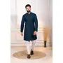 Teal Color Designer Embroidery Work Ceremonial Ethnic Kurta Payjama For Men's