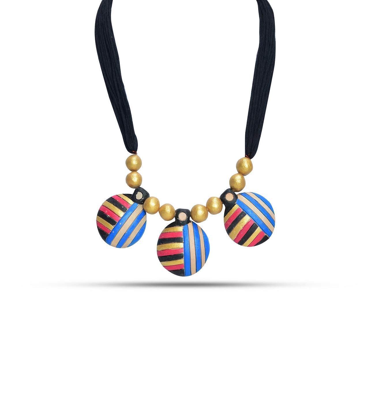 The product in display is made from terracotta material and is finished in an attractive black color. Furthermore this product features a strand shape and a design that renders it with the versatility to be worn as a festive occasion wear