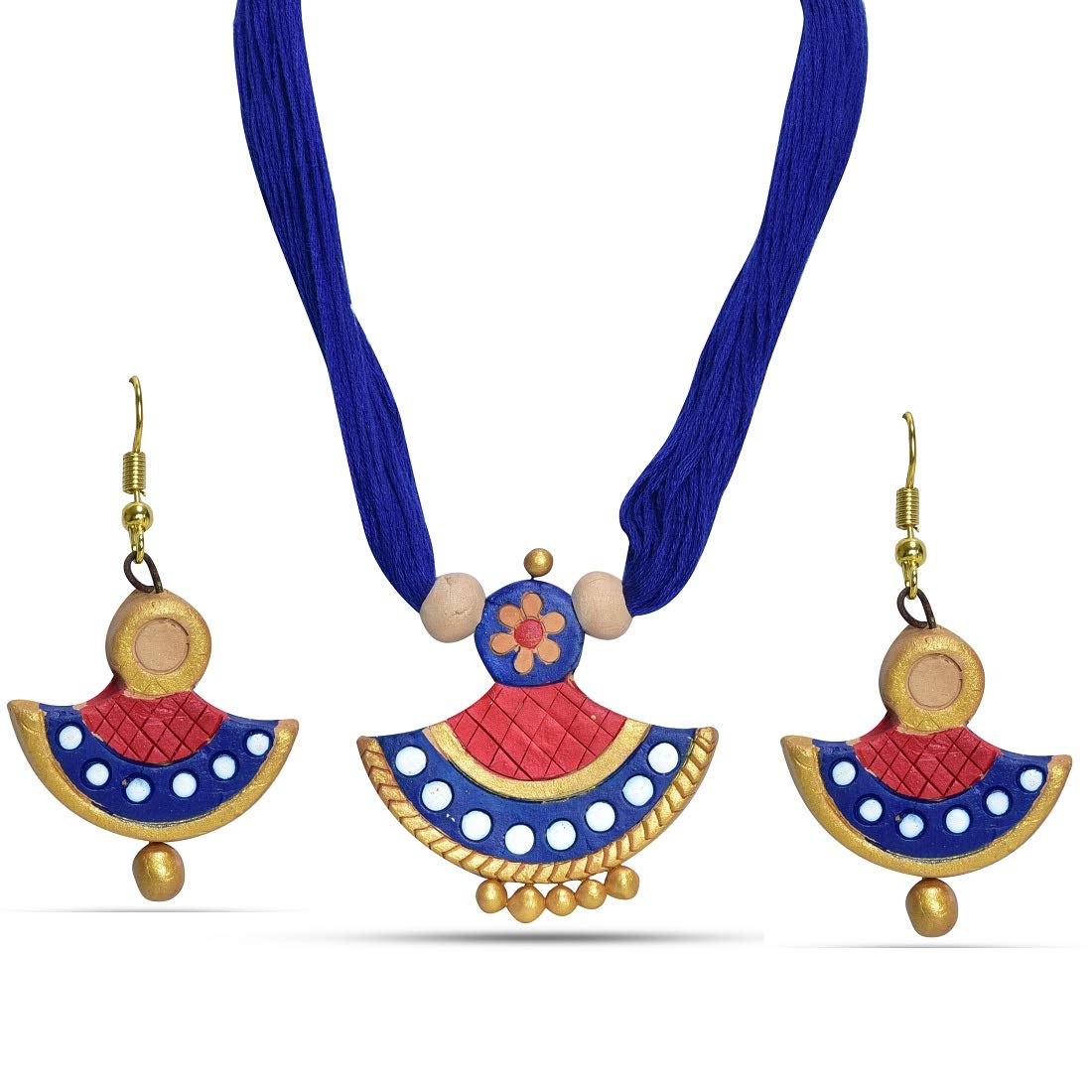 The product in display is made from terracotta material and is finished in an attractive blue color. Furthermore this product features a strand shape and a design that renders it with the versatility to be worn as a festive occasion wear.