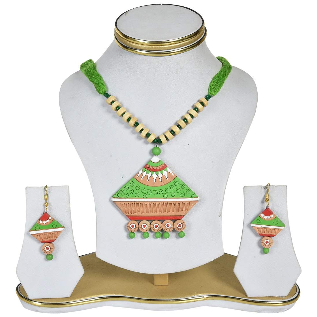 The product in display is made from terracotta material and is finished in an attractive color. Furthermore this product features a strand shape and a design that renders it with the versatility to be worn as a festive occasion wear.