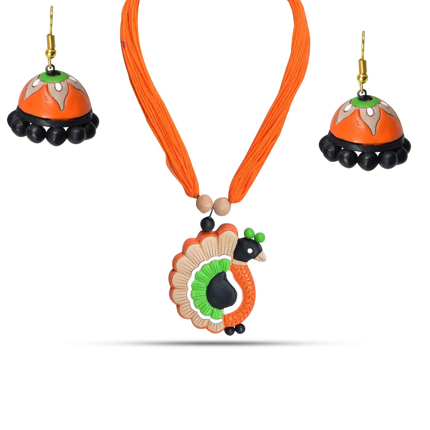 The product in display is made from terracotta material and is finished in an attractive orange color. Furthermore this product features a strand shape and a design that renders it with the versatility to be worn as a festive occasion wear.