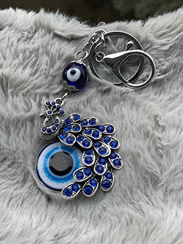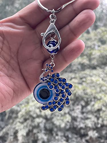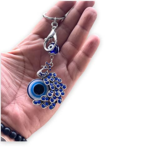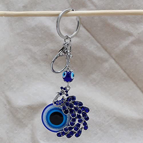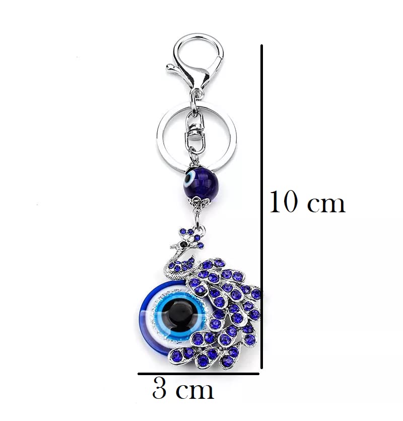 BLUE BEADS Peacock Shape Pendant Blue Evil Eye Keychain Crystal alloy peacock Keyring for Men and Women (Pack of 1)