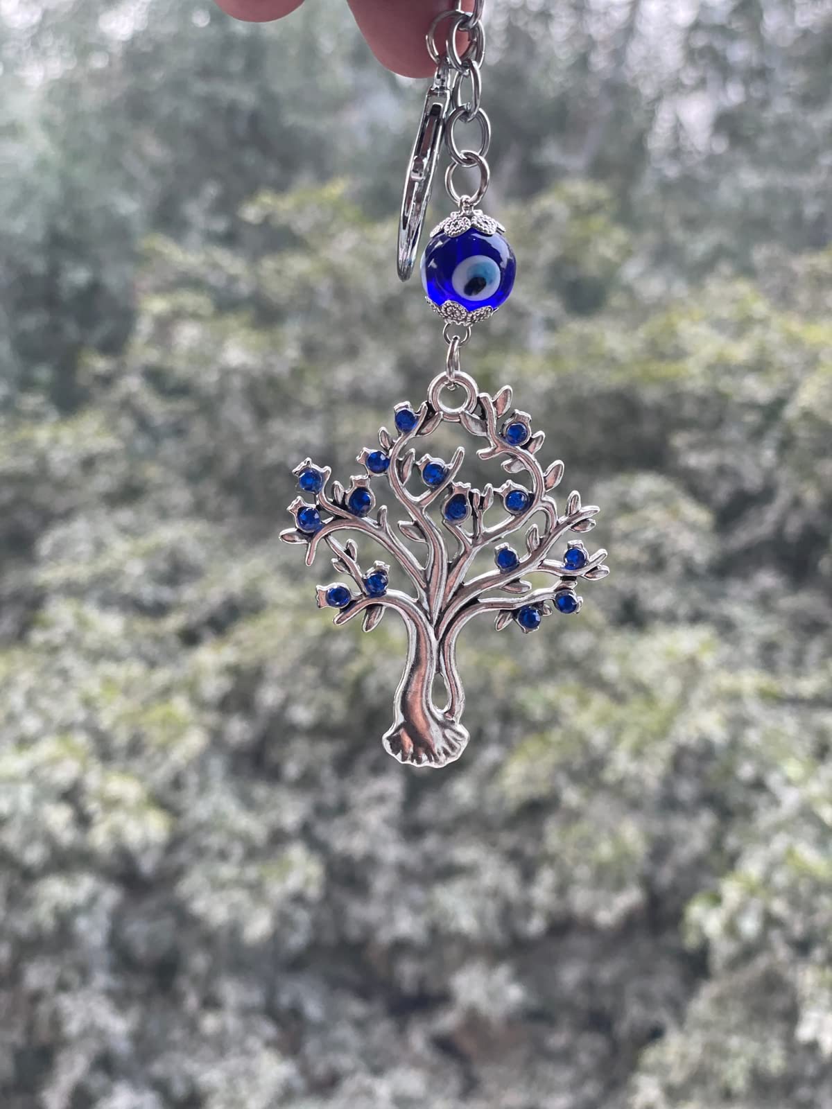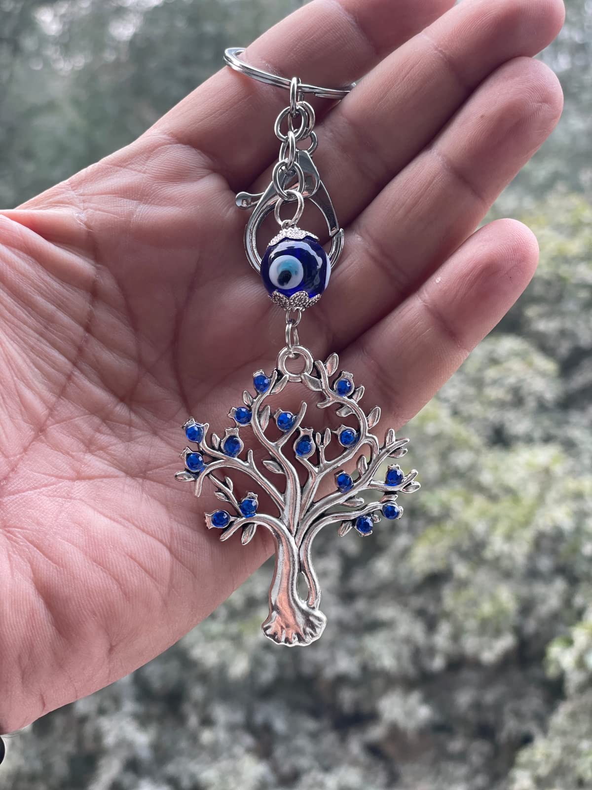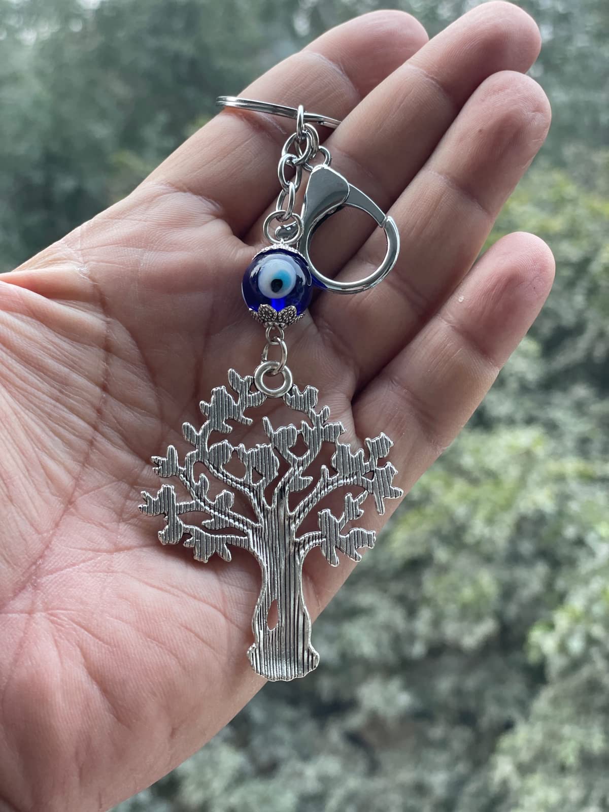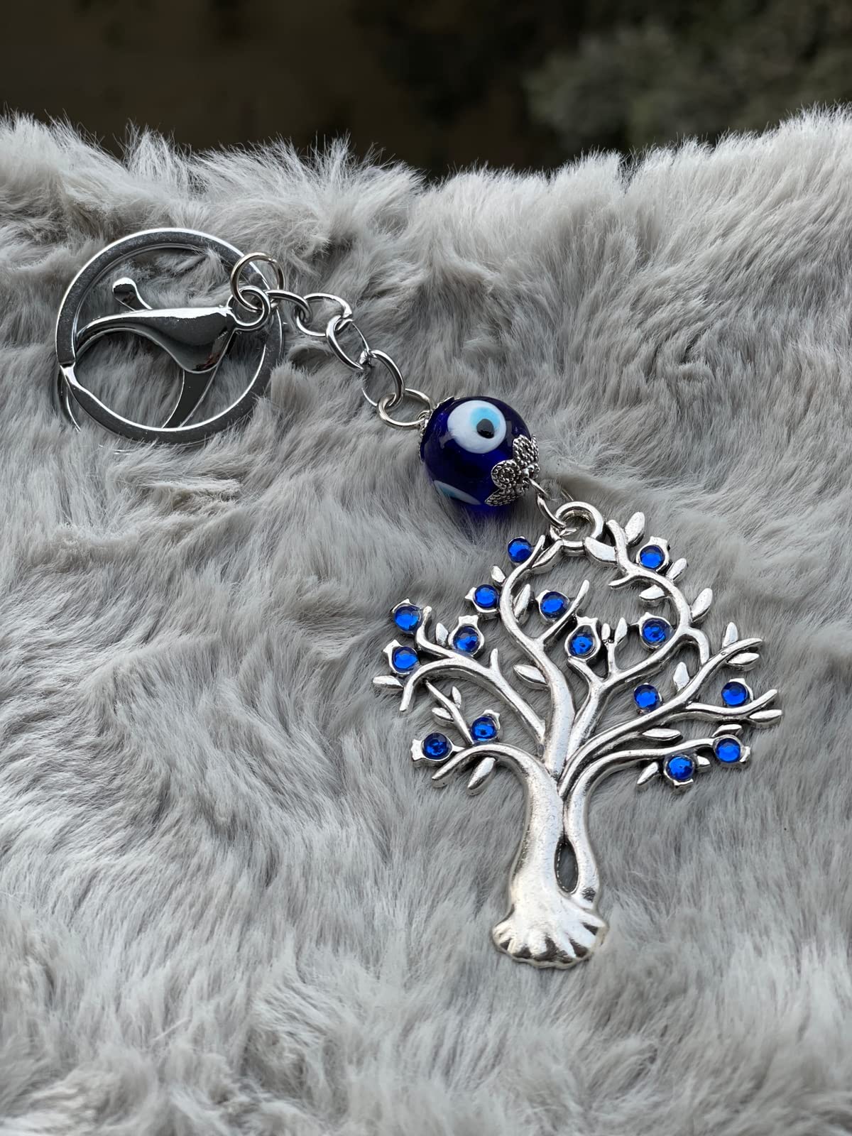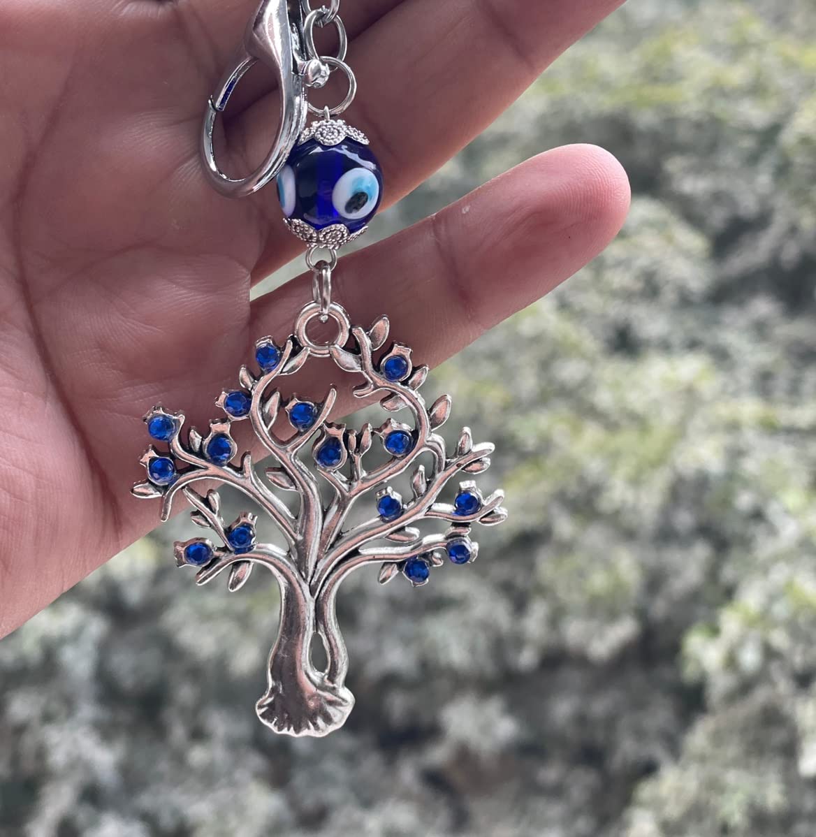 BLUE BEADS Tree Shape Pendant with Blue Evil Eye Keychain Crystal alloy Keyring for Diwali Gift item for Men and Women (Pack of 1)