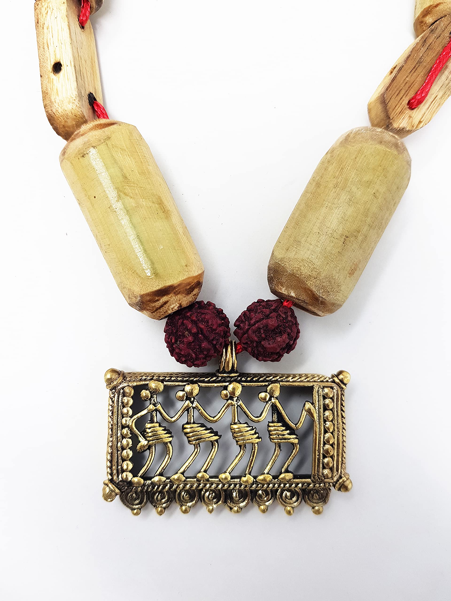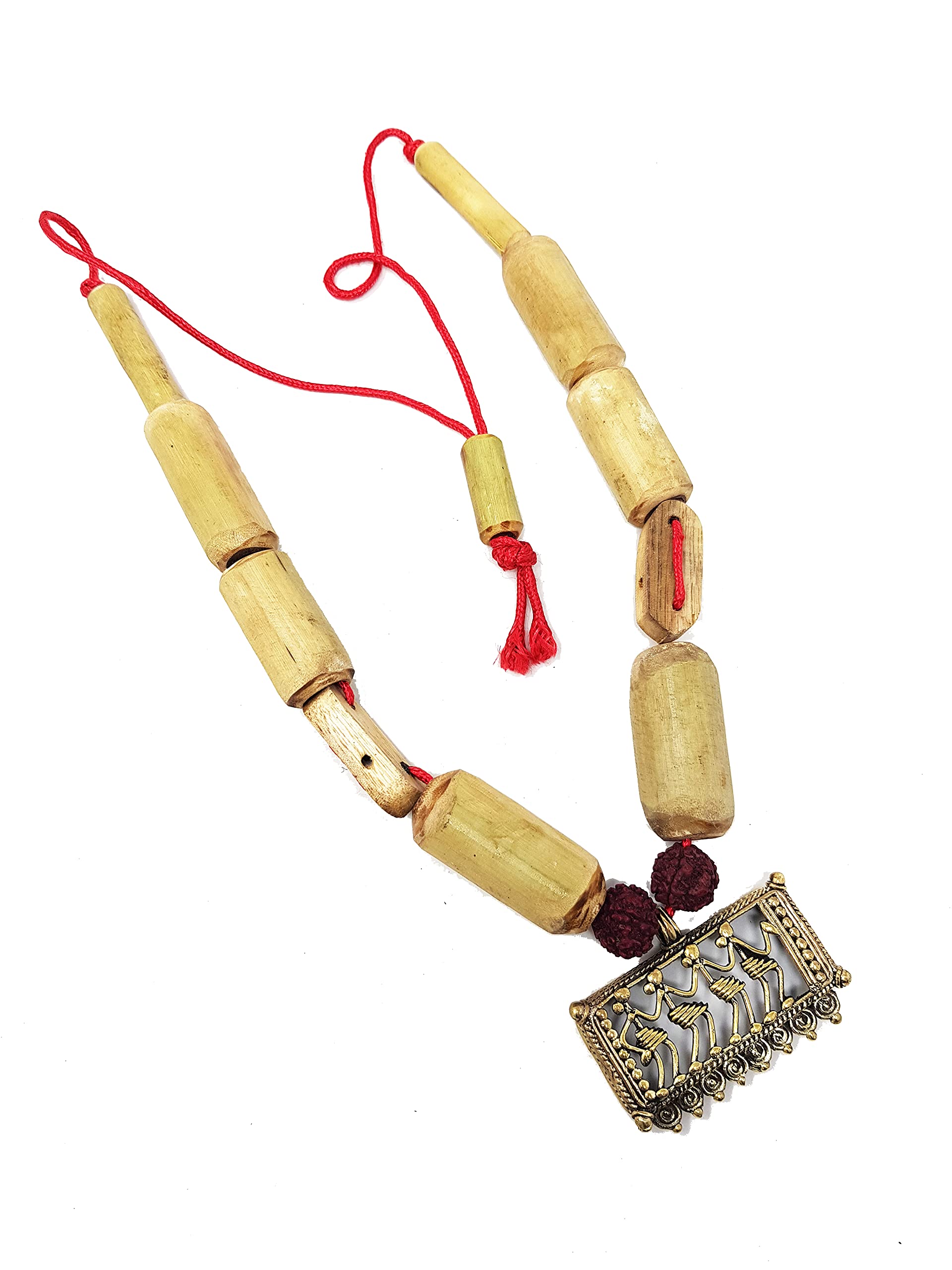 Handcrafted in Bastar Chhattisgarh with bell metal using traditional lost wax technique of Dhokra Craft our pendants with anachronistic tribal structures is suggesting its association to the rich cultural past of India. This piece captured through fine detailing of the figurine depicts the expert craftsmanship of the artisan. This Jewellery piece looks exquisite with Tribal Design and will be a great fashion symbol. Also this tribal art makes for an excellent gift to your near and dear ones.