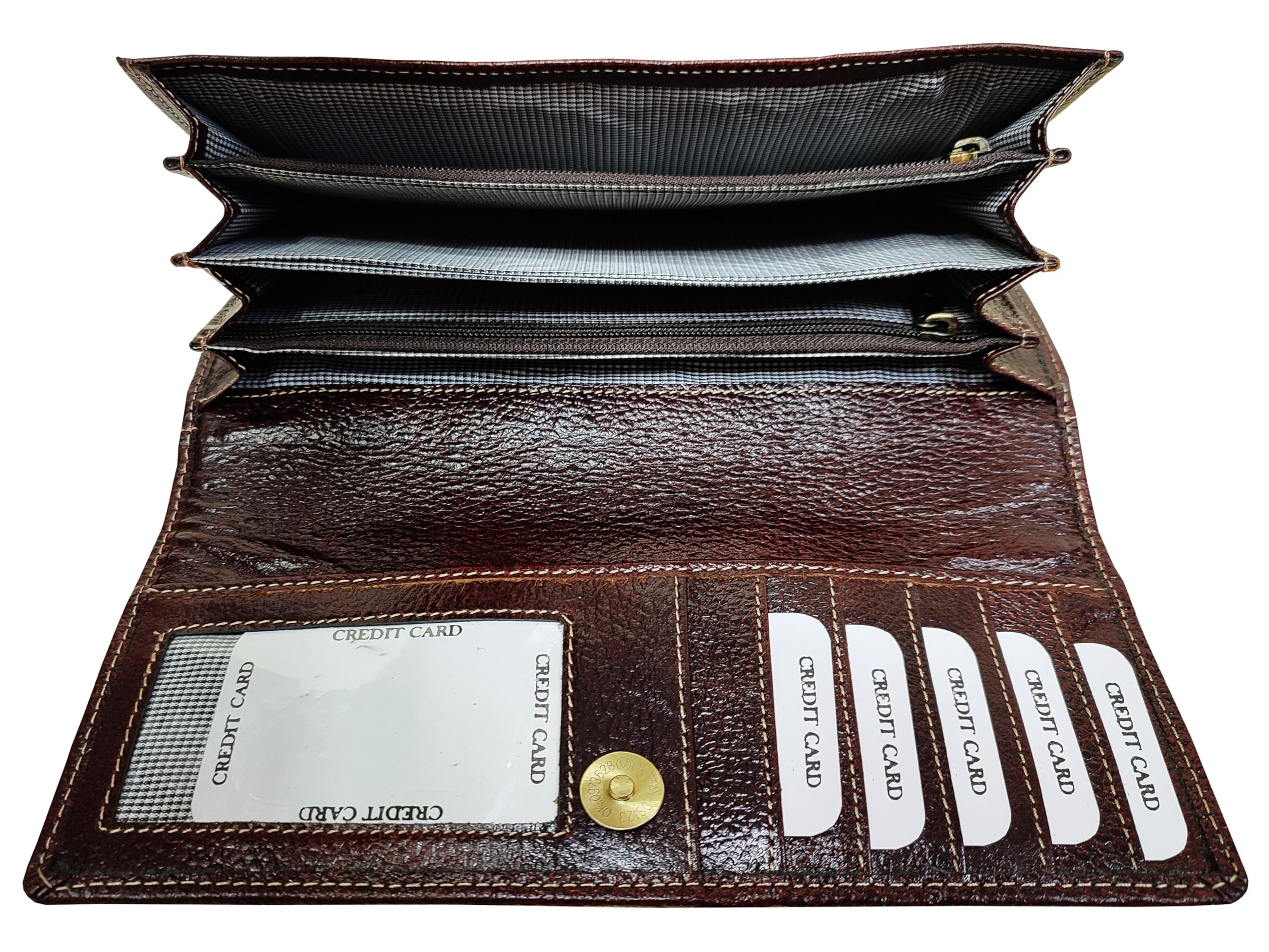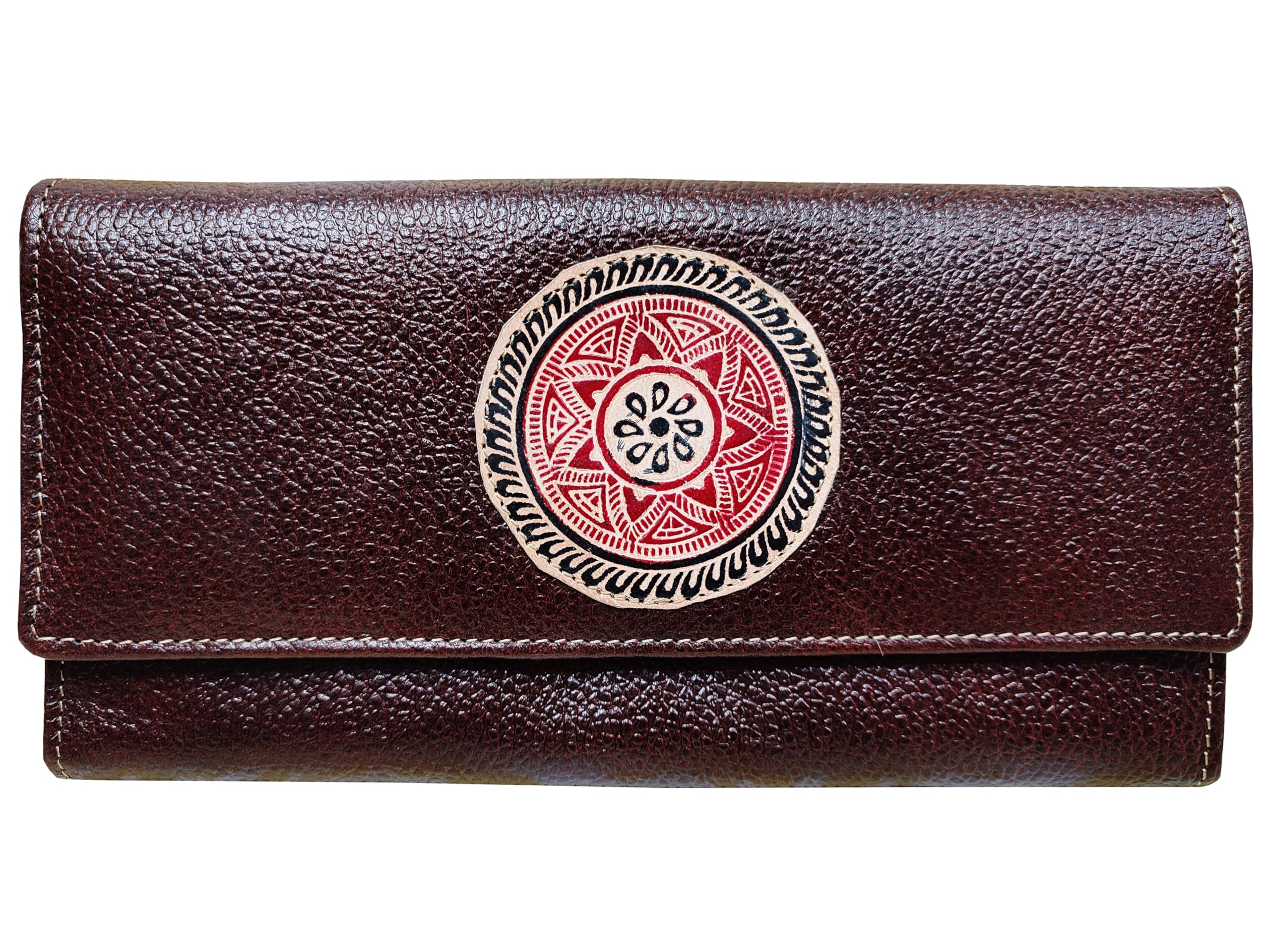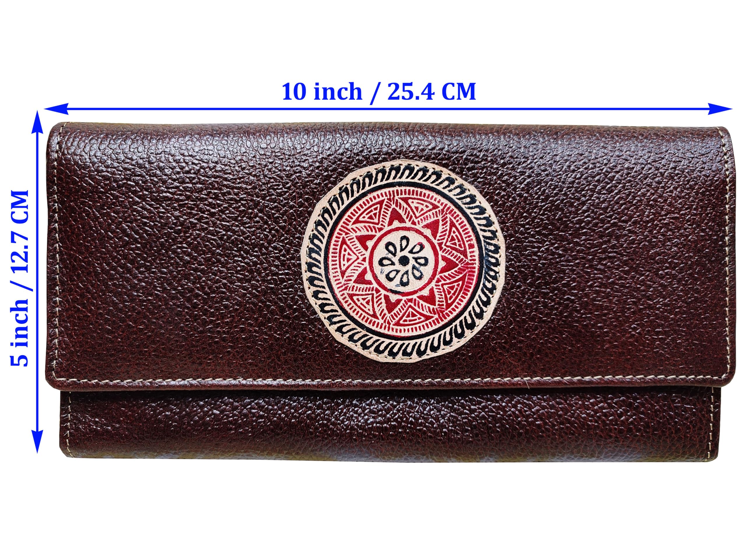 Handcrafted from Genuine Leather a Beautiful Ethnic Art of West Bengal. Design on both sides Multiple Compartments Closure: Zip and Magnetic button. This purse is a classic example of age old Shantiniketan craft which was introduced in West Bengal India during the 1940s. The Shantiniketan style evolved as a result of the Art Movement and these products have now become world famous for their applique batik and embossed craft work. The process of burnishing the leather gives it an elegant sheen and brings out the colors. The major embossing craft is done by hand and is an intricate process. After the final leather made it is then stitched into the desired product coated with a lacquer finish for making the product shiny and long lasting. We are happy for your interest SHANTINIKETAN EMBOSSED LEATHER PRODUCTS and artist of Shantinikan thanks to you.