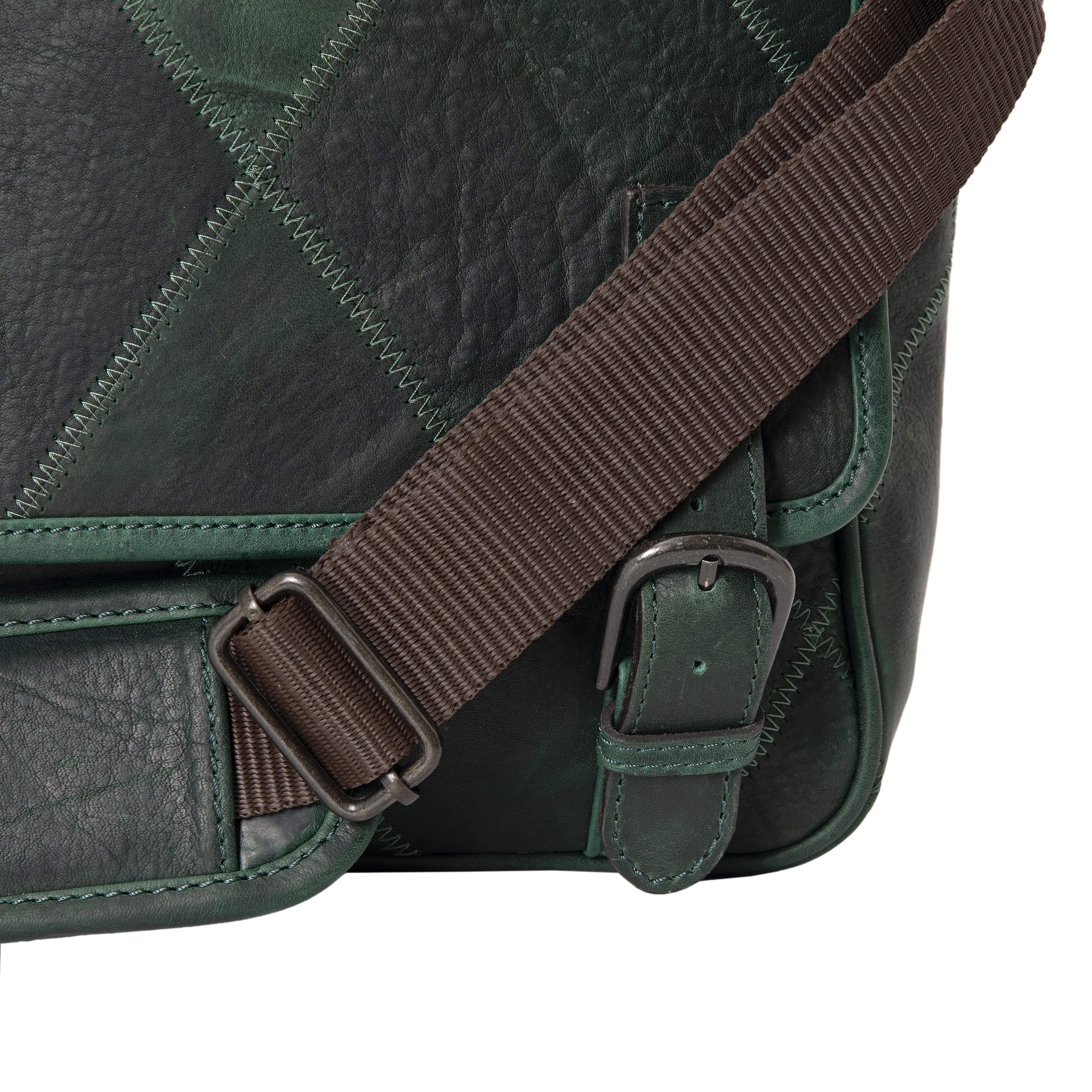 This is a handmade green coloured Portfolio / Office Bag / Laptop Bag / Travel Bag made from 100% waxy genuine full grain leather. Features of the bag: It closes fully with a zipper on top & a flap-over with buckles. It is quite spacious with multiple compartments. Inside the bag there are two large open compartments & one large zipper compartment to carry all your office essentials like files folders documents etc. & a padded laptop compartment that is fastened with a small velcro flap. There is also a small zipper pocket inside & a zipper compartment in front. An open pocket at the back of the bag gives you extra storage that is handy. This bag is suitable for formal business meetings casual outings or college classes. It is also suitable for a weekend getaway as it can accommodate a set of clothes. The bag can be carried in hand or over your shoulder using the comfortable adjustable detachable shoulder strap. Dimensions: Length: 15.35 inches Width (at base): 3.5 inches Height: 11.4 inches