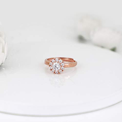 A fresh spin on the traditional diamond ring. A bevy of dazzling zircons surround a radiant centrepiece creating a truly enchanting atmosphere. All of this is set on a revolving base giving this Rose Gold Solitaire Spin Ring ring a truly modern twist AAA+ Quality Zircon Stones Sterling Silver with Rose Gold plating and 925 hallmark Adjustable size to ensure no fitting issues Ring size 8-10/ 18mm -19.8mm (adjustable) Rhodium e-coat to prevent tarnish Comes with the GIVA Jewellery kit and authenticity certificate