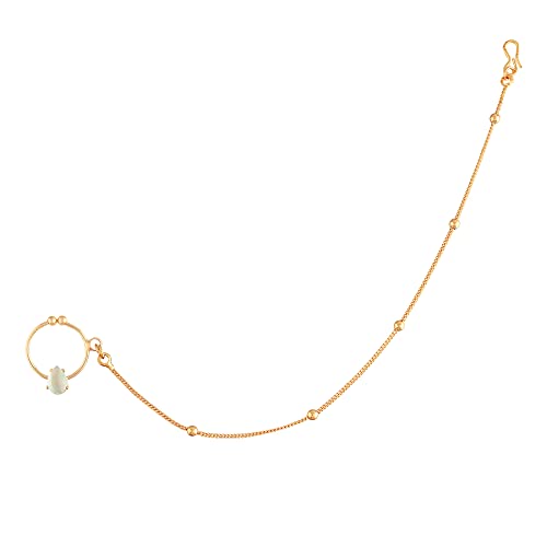 HomeFashionRingsI Jewels 18k Gold Plated Indian Wedding Bollywood Ethnic Bridal Nose Ring/Nath Without Piercing with Chain Encased with Pearl Stone for Women (NL44)