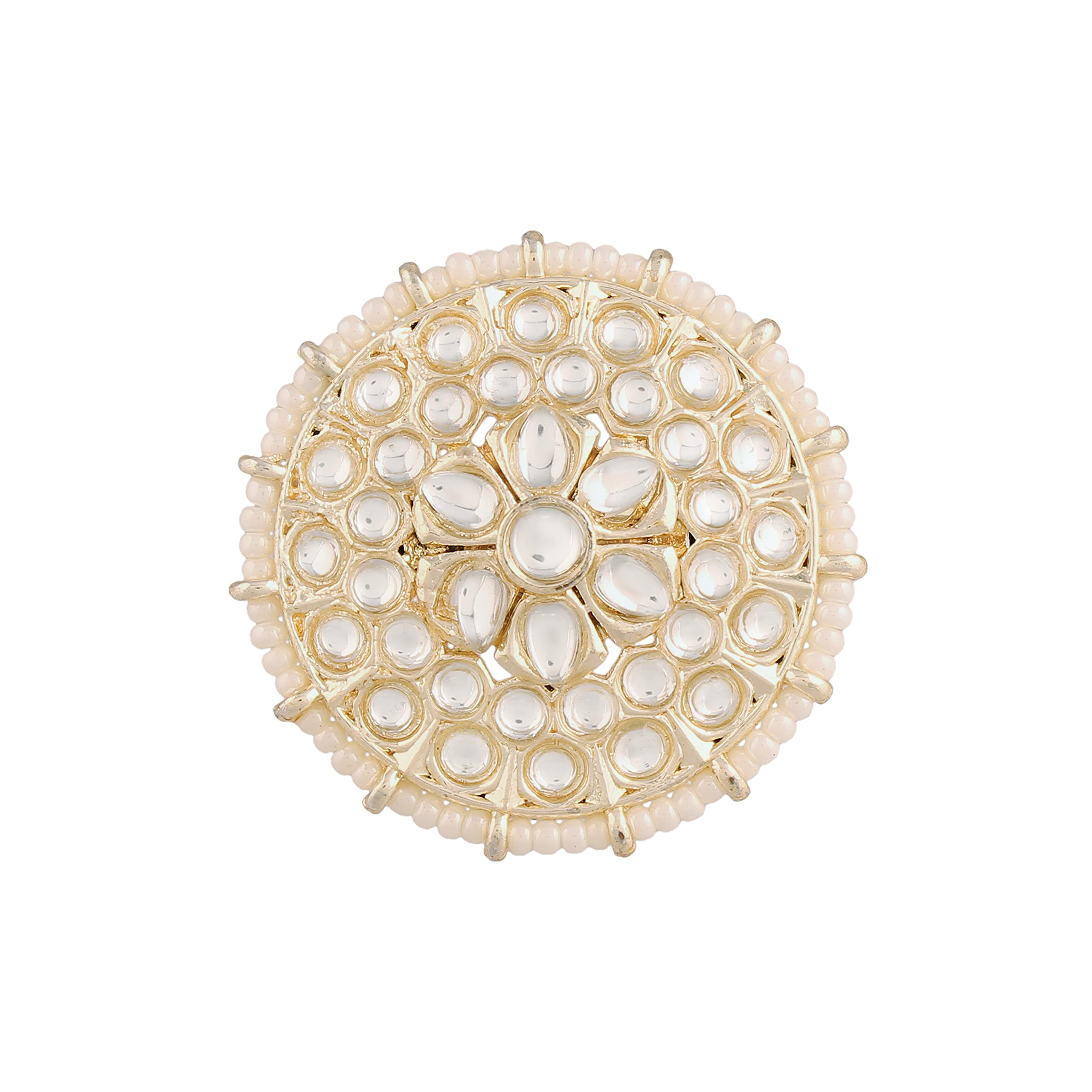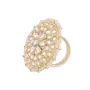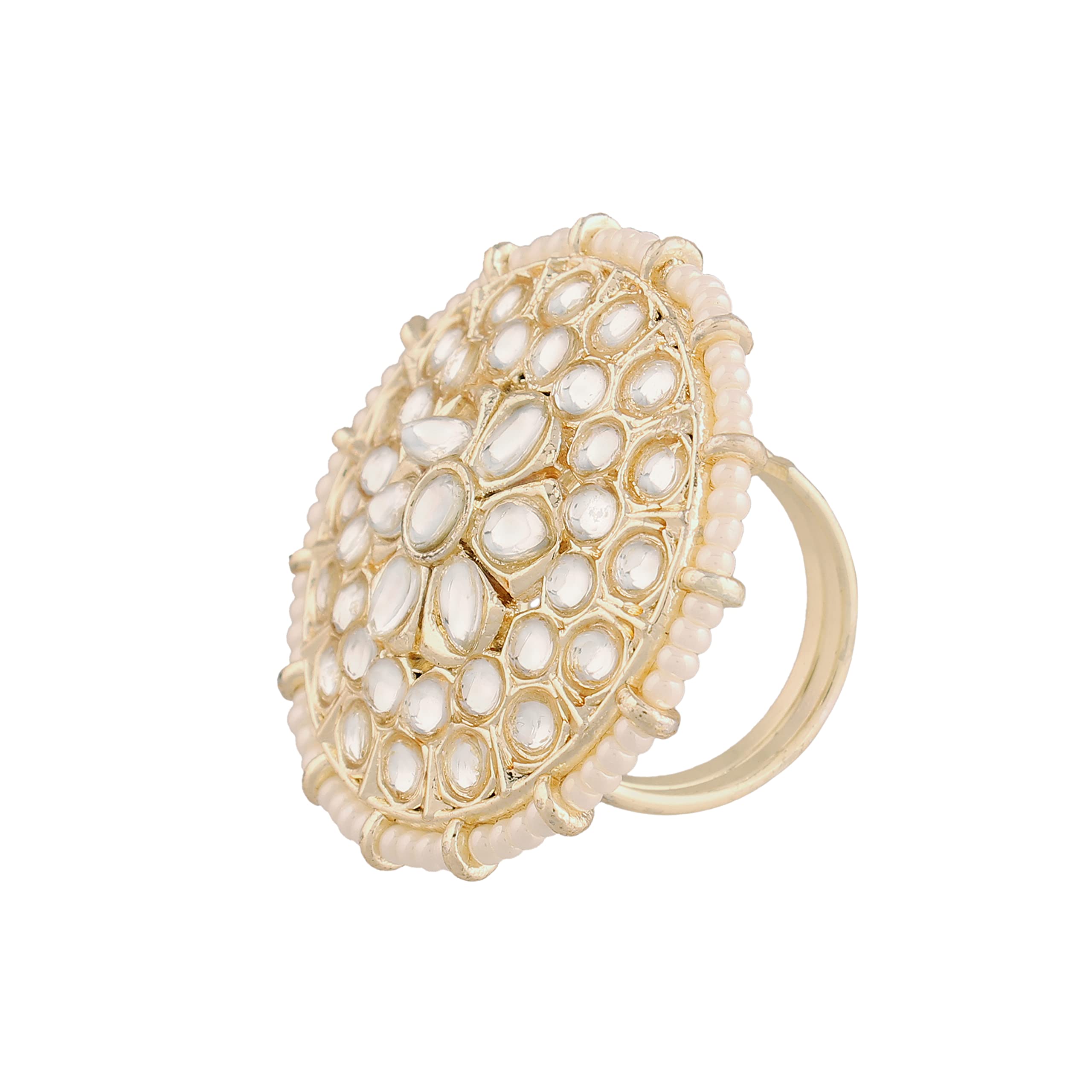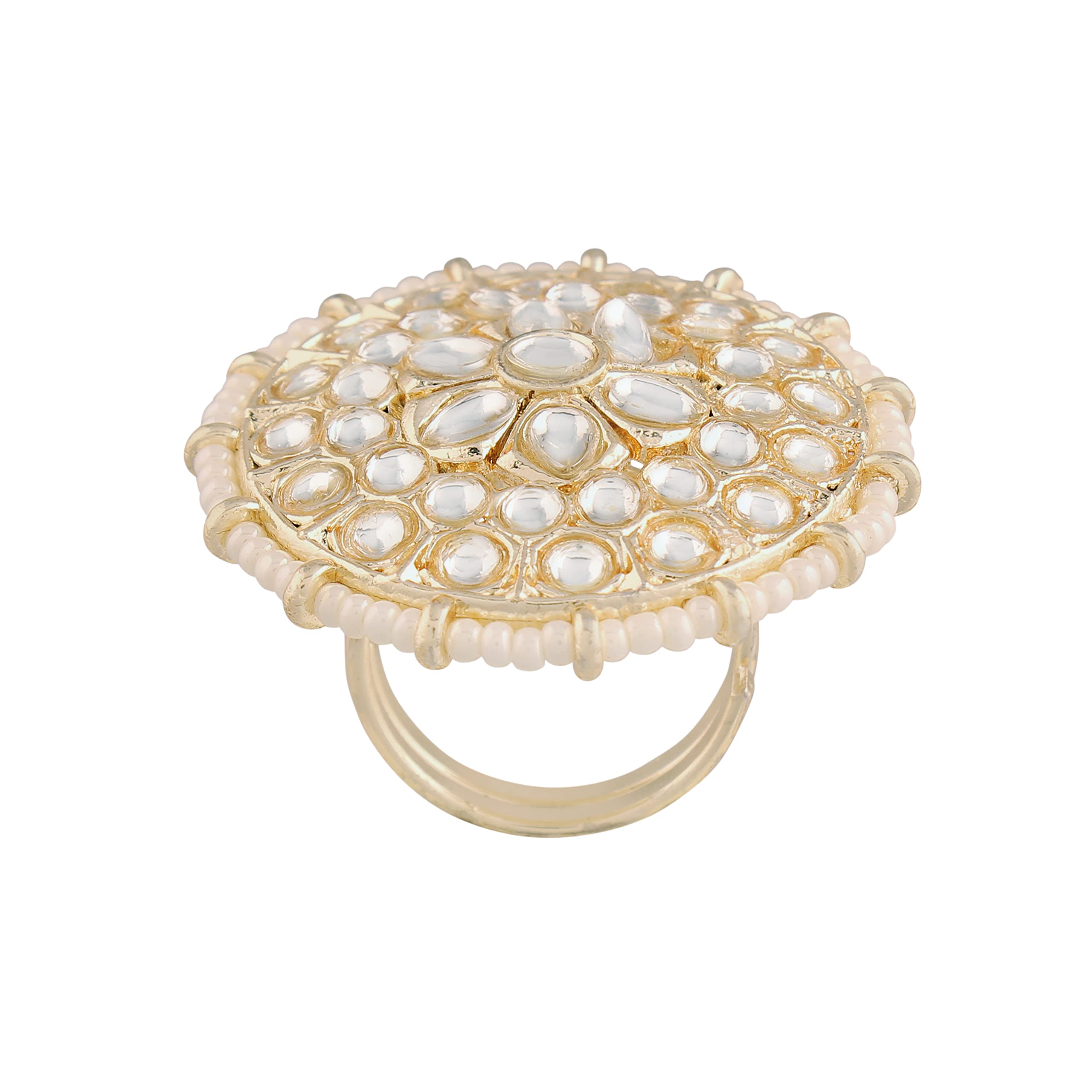 I Jewels 18k Gold Plated Traditional Green Kundan & Pearl Studded Adjustable Finger Ring for Women (FL202)