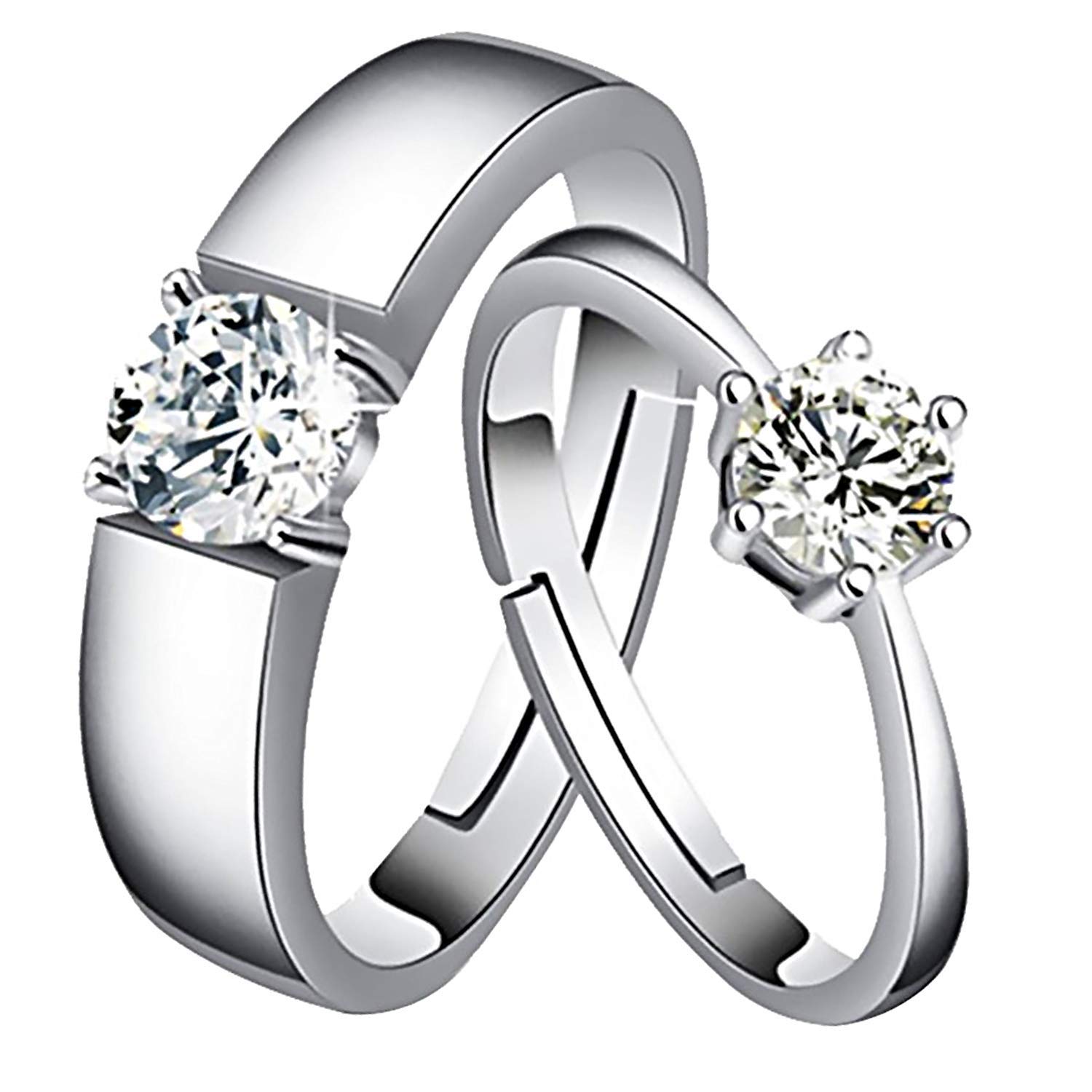 I Jewels CZ Silver Plated Adjustable Couple Finger Ring's for Women's (FL157-8-9)
