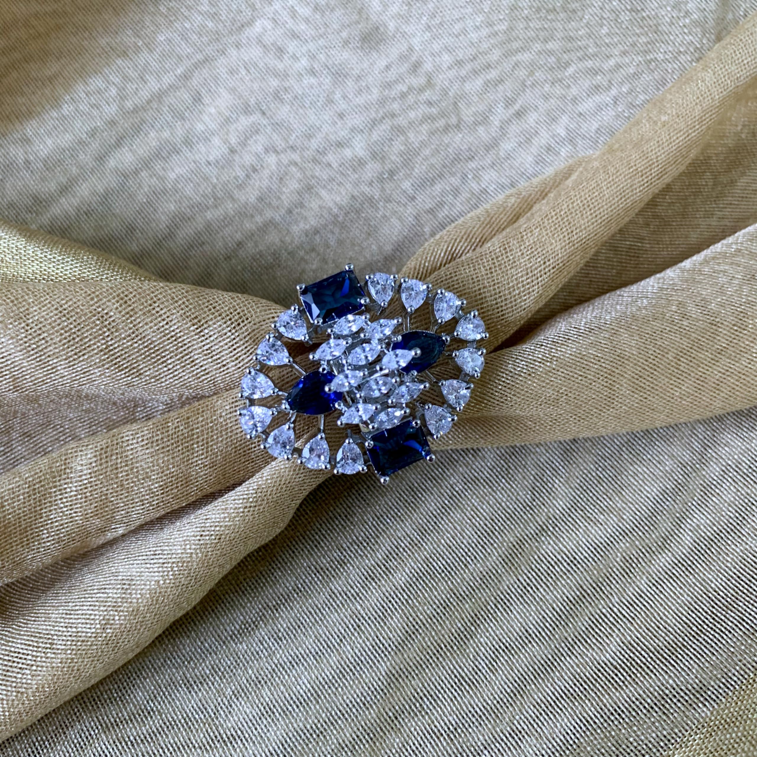 I Jewels Stylish Latest American Diamond Cubic Zirconia Statement Adjustable Brass Finger Ring For Women/Girls (FL245)
