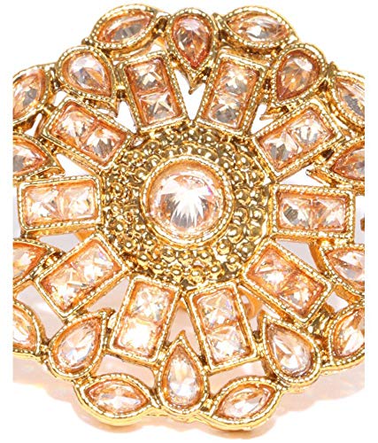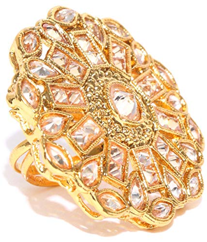 Priyaasi Golden Golden ColorKundan Studded Adjustable Finger Ring for Women and Girls
