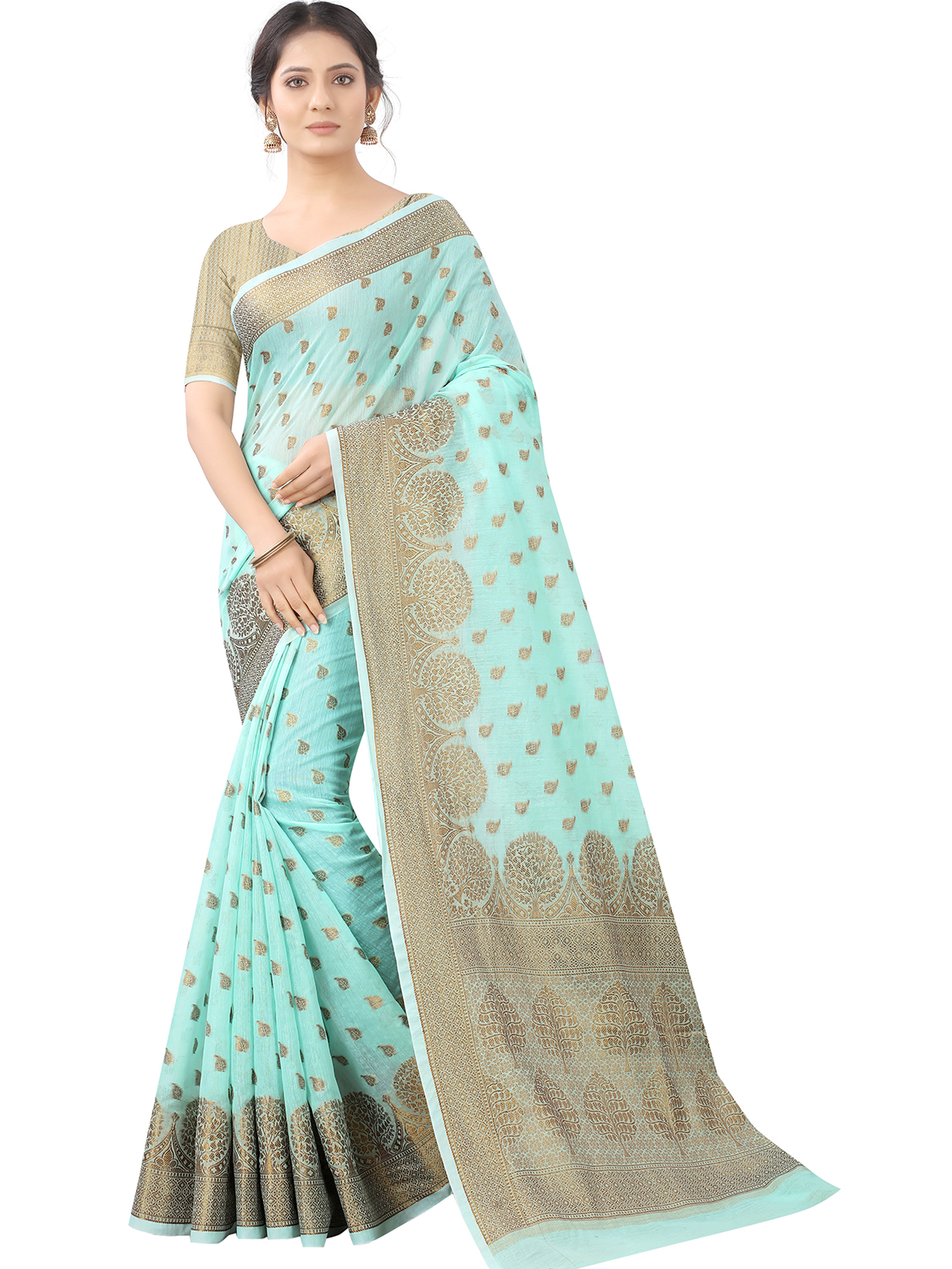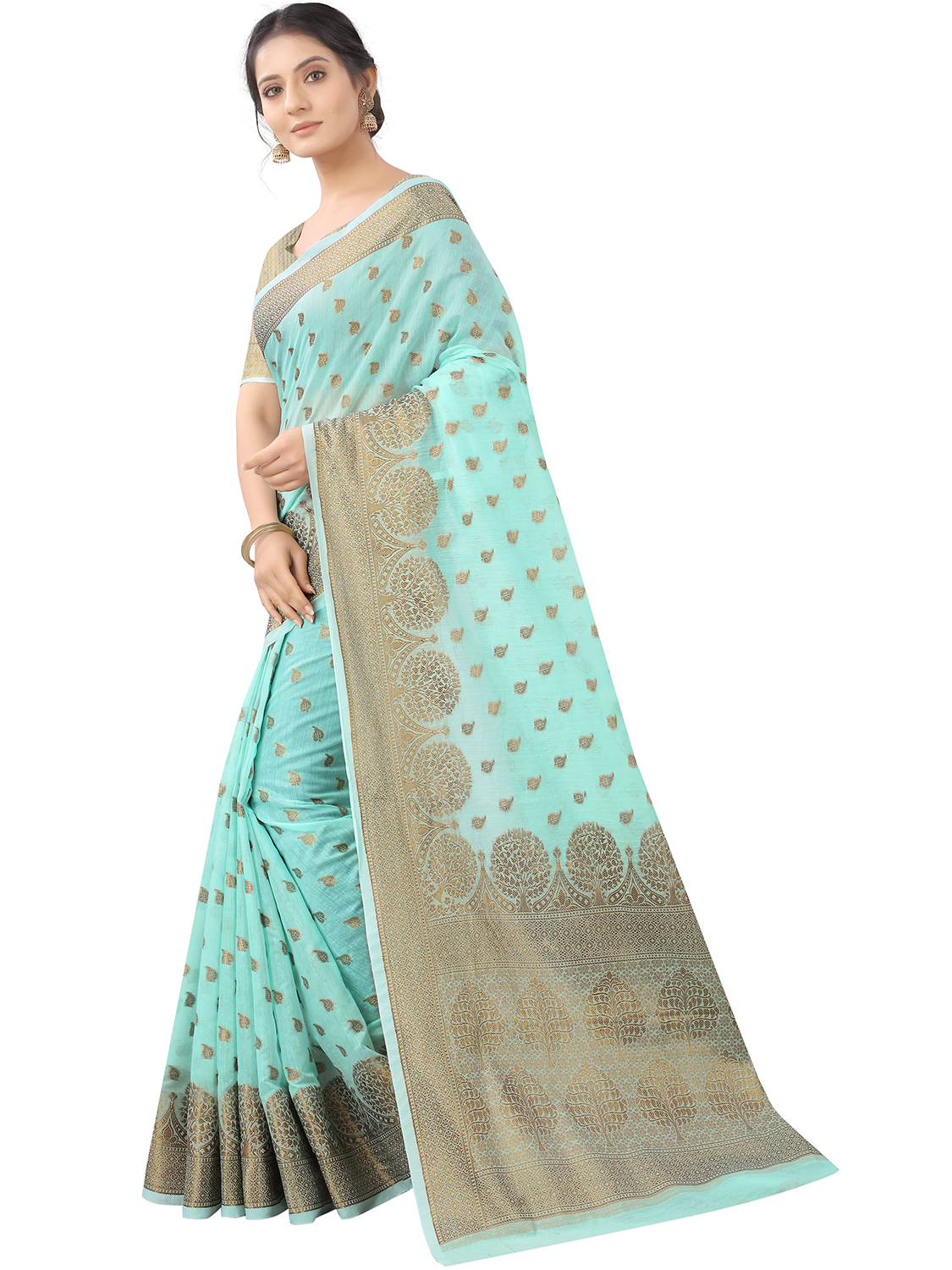 AASTHA FASHION Fashion Dream Womens Aqua Blue Cotton Silk Saree | Soft & Elegant Traditional Wear