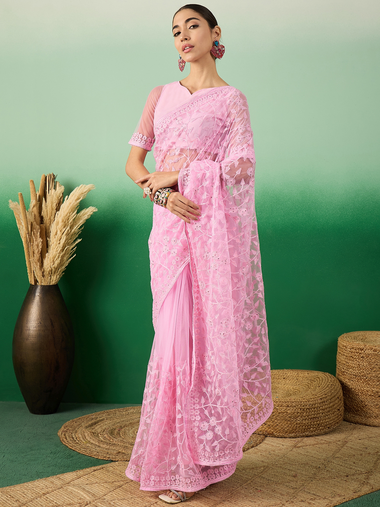 AASTHA FASHION Fashion Dream Womens Baby Pink Net Saree | Soft & Elegant Traditional Wear