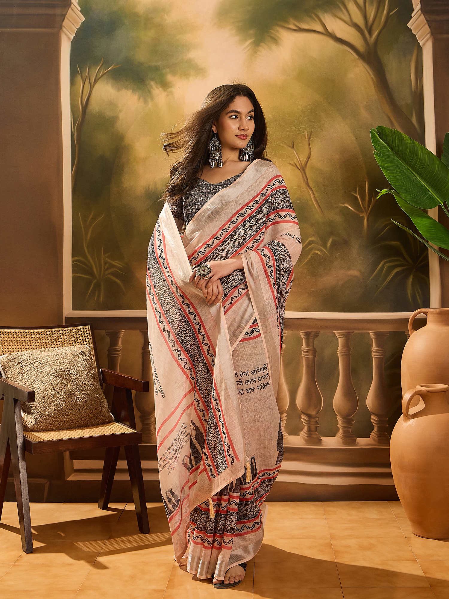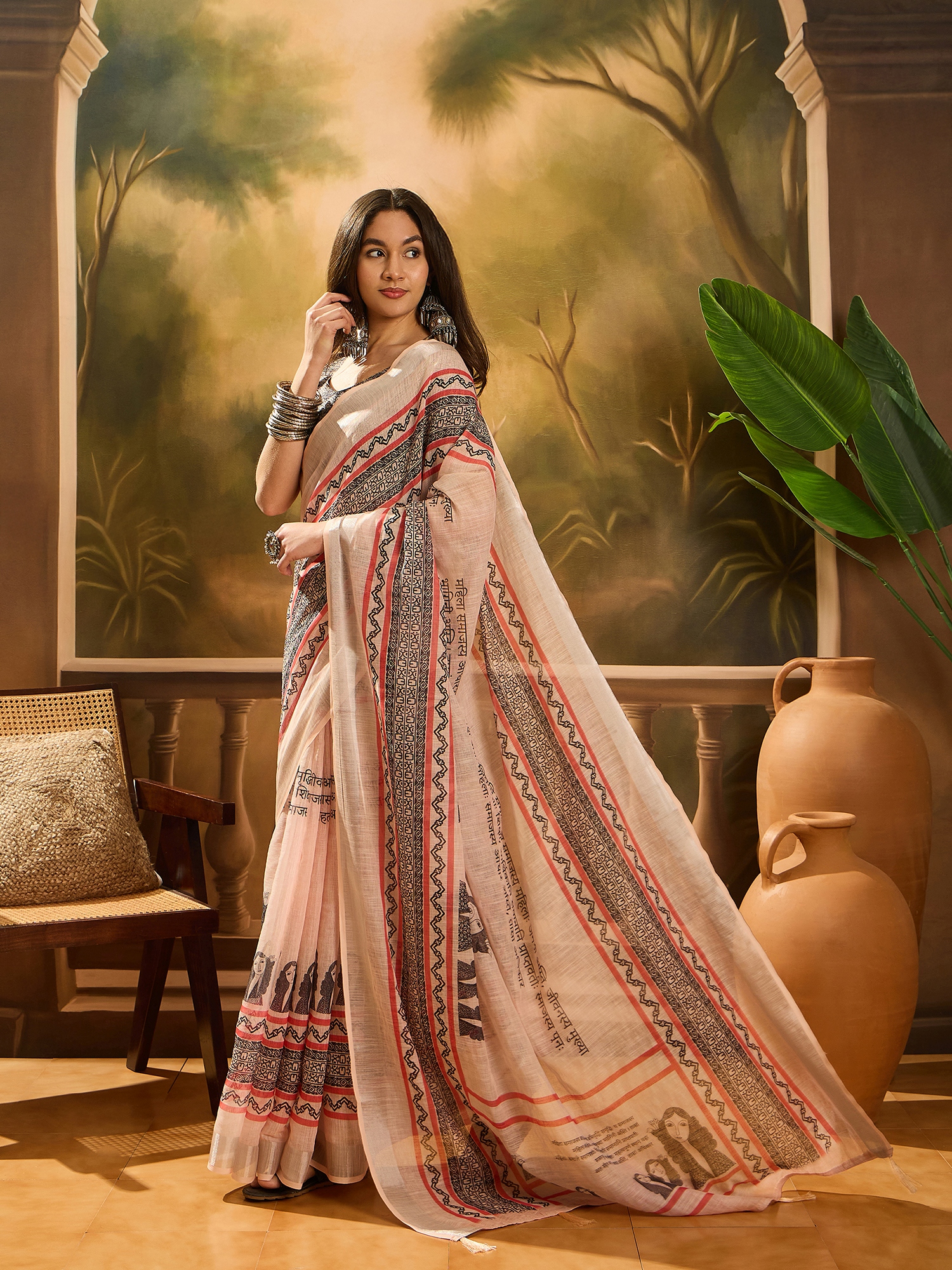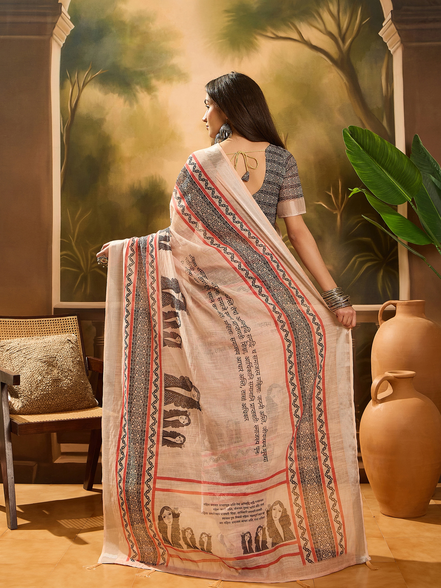 AASTHA FASHION Fashion Dream Womens Beige Linen Cotton Blend Saree | Soft & Elegant Traditional Wear