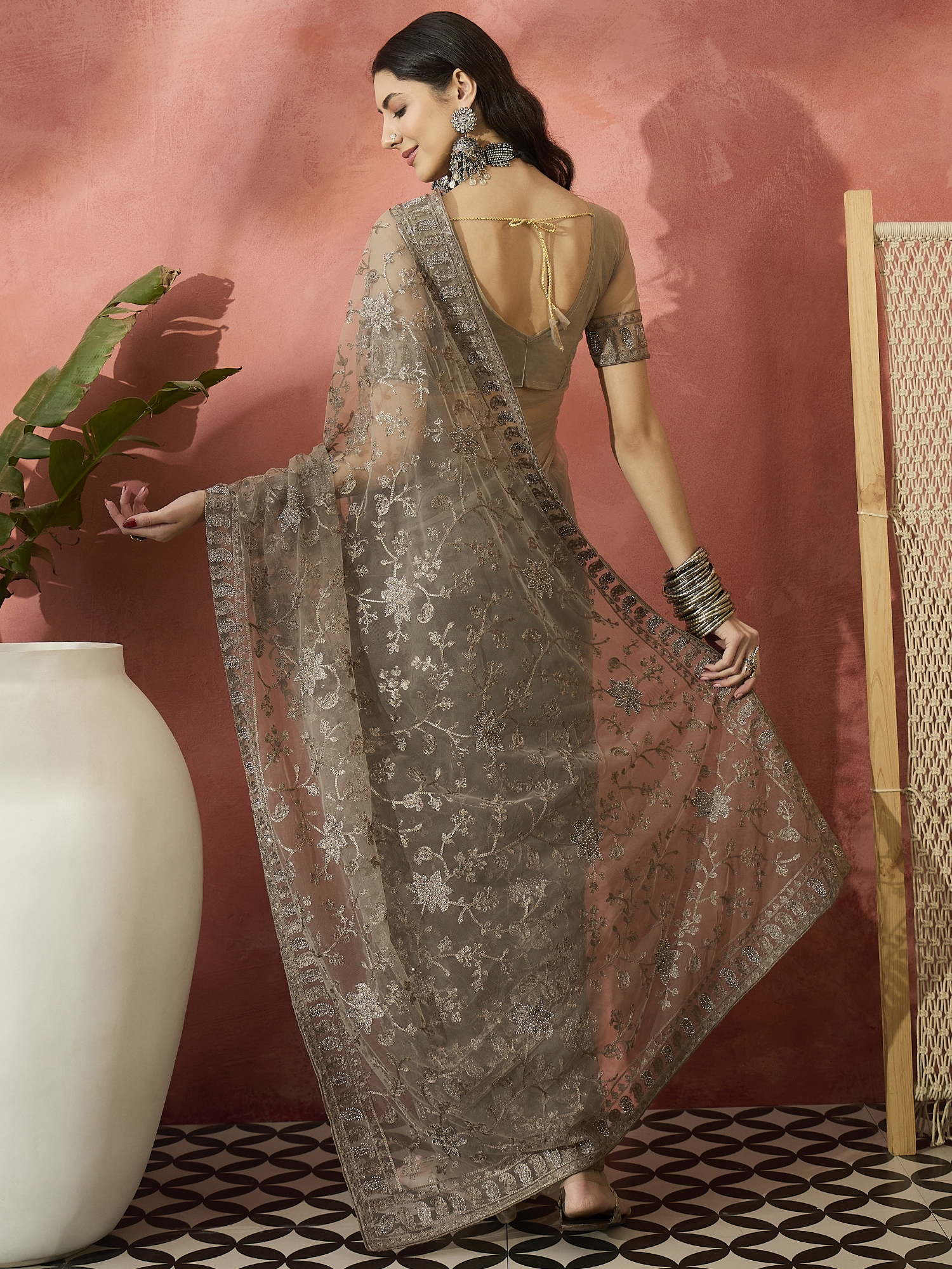 • Saree Work-Embroidered ,Blouse Work- Net