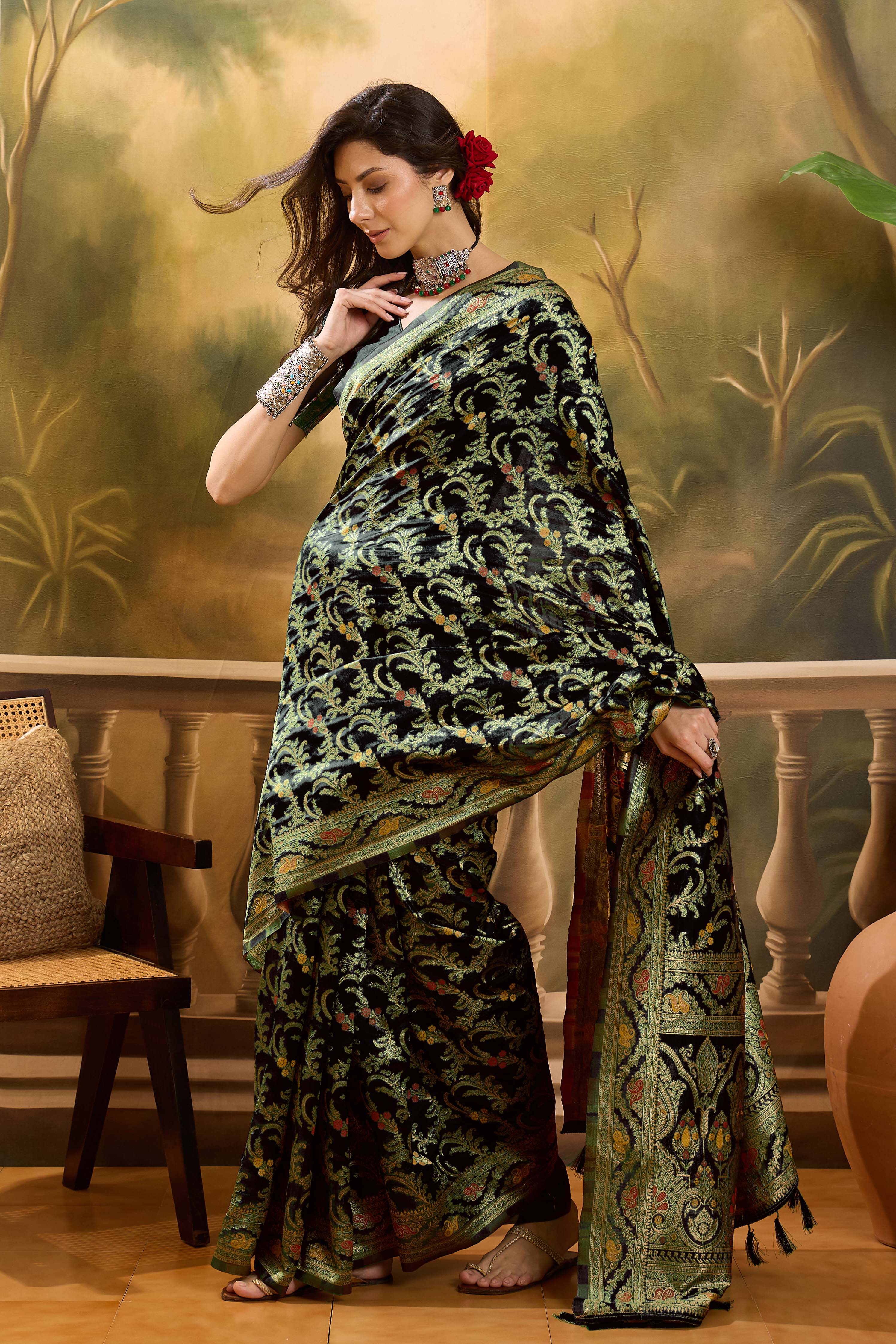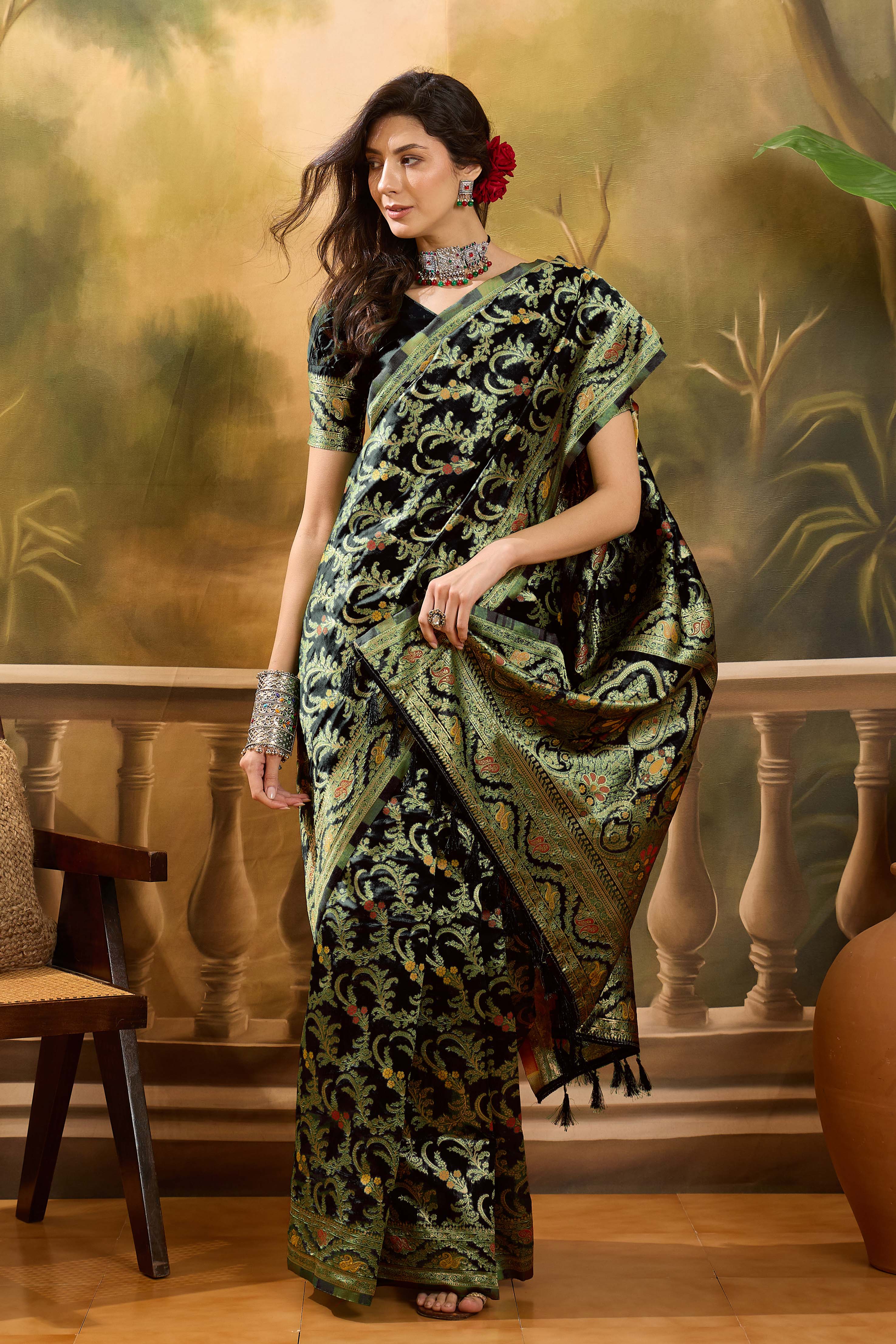 • Saree Work-Weaving ,Blouse Work- Banarasi Jacquard