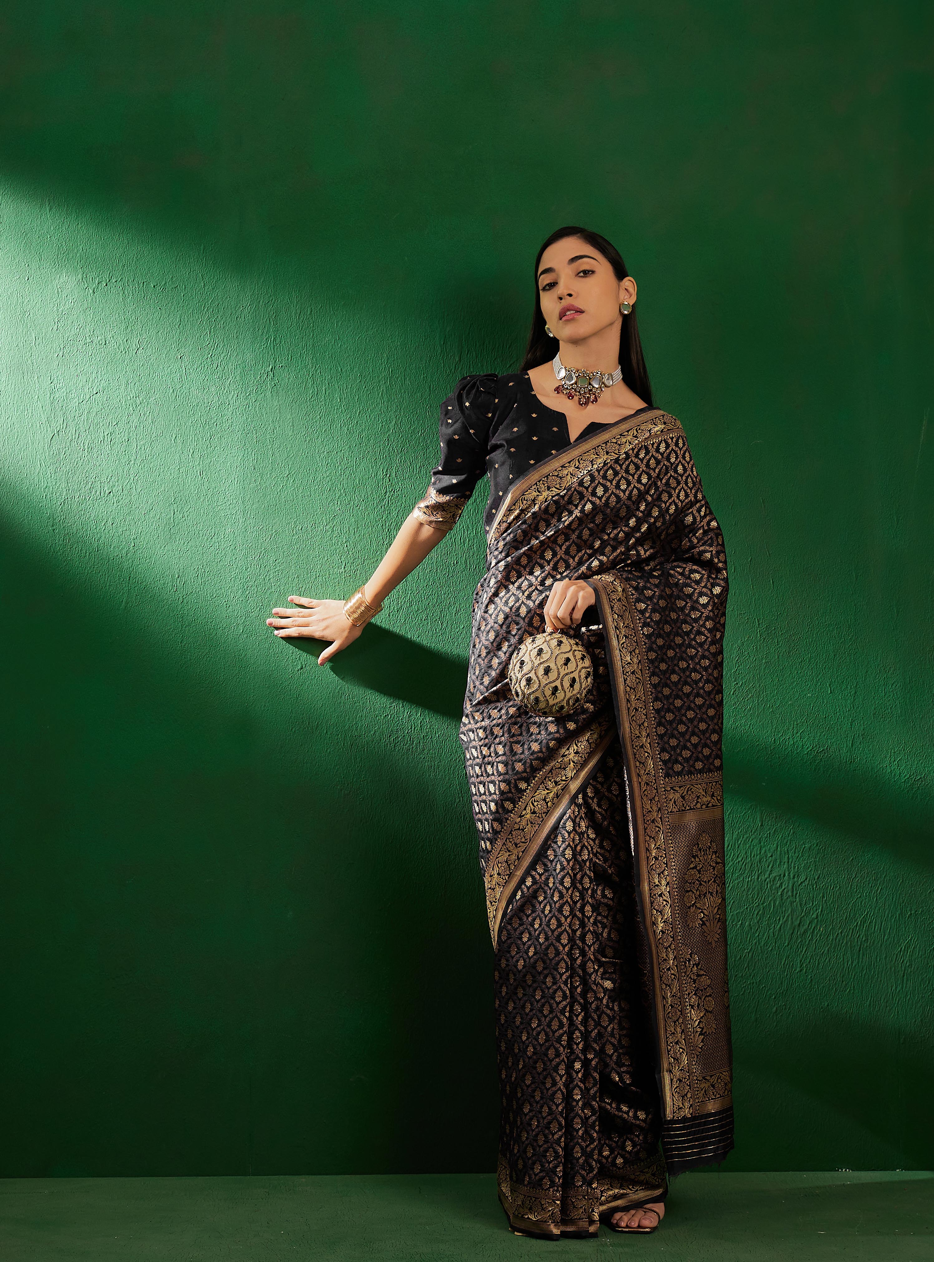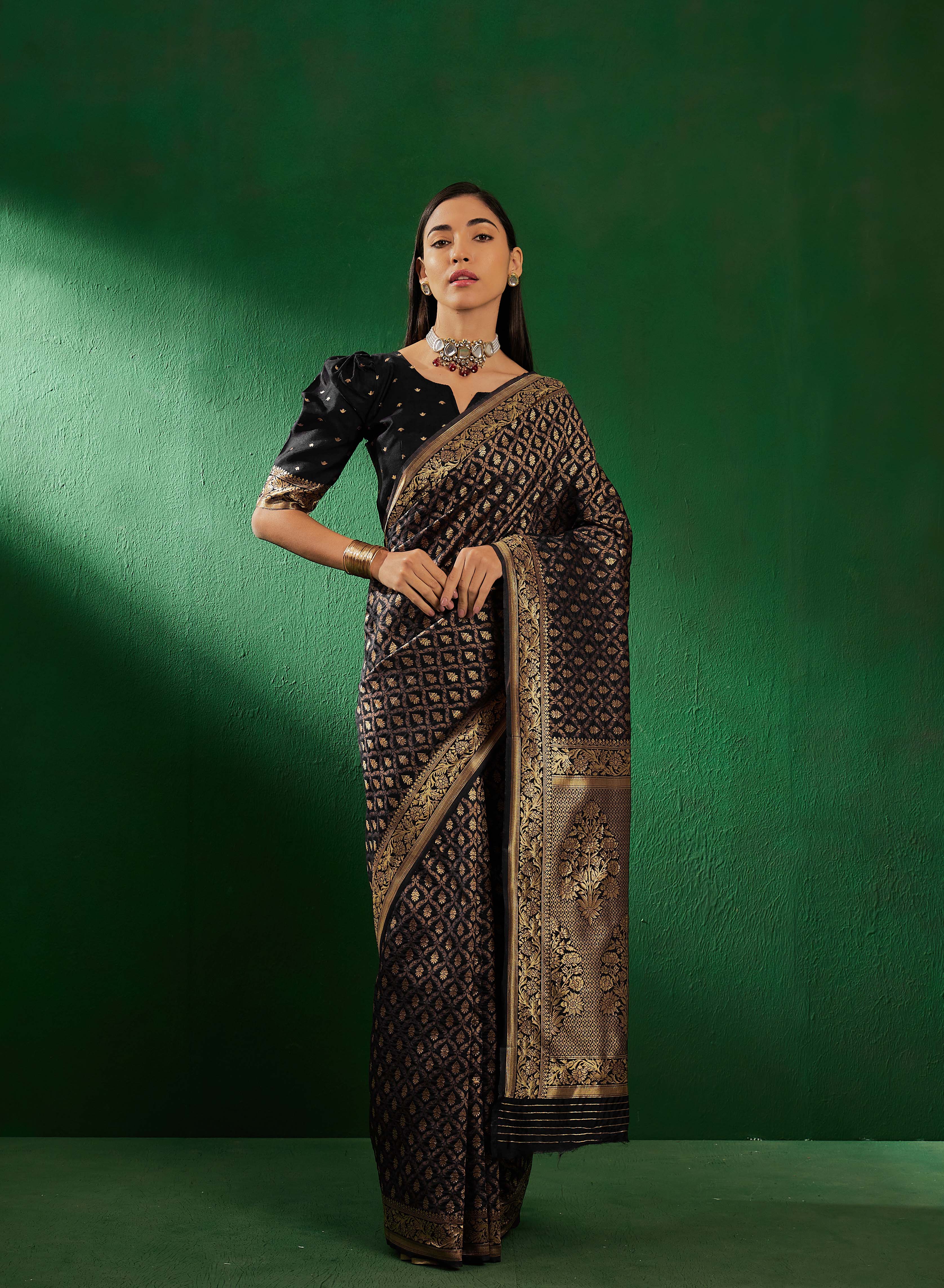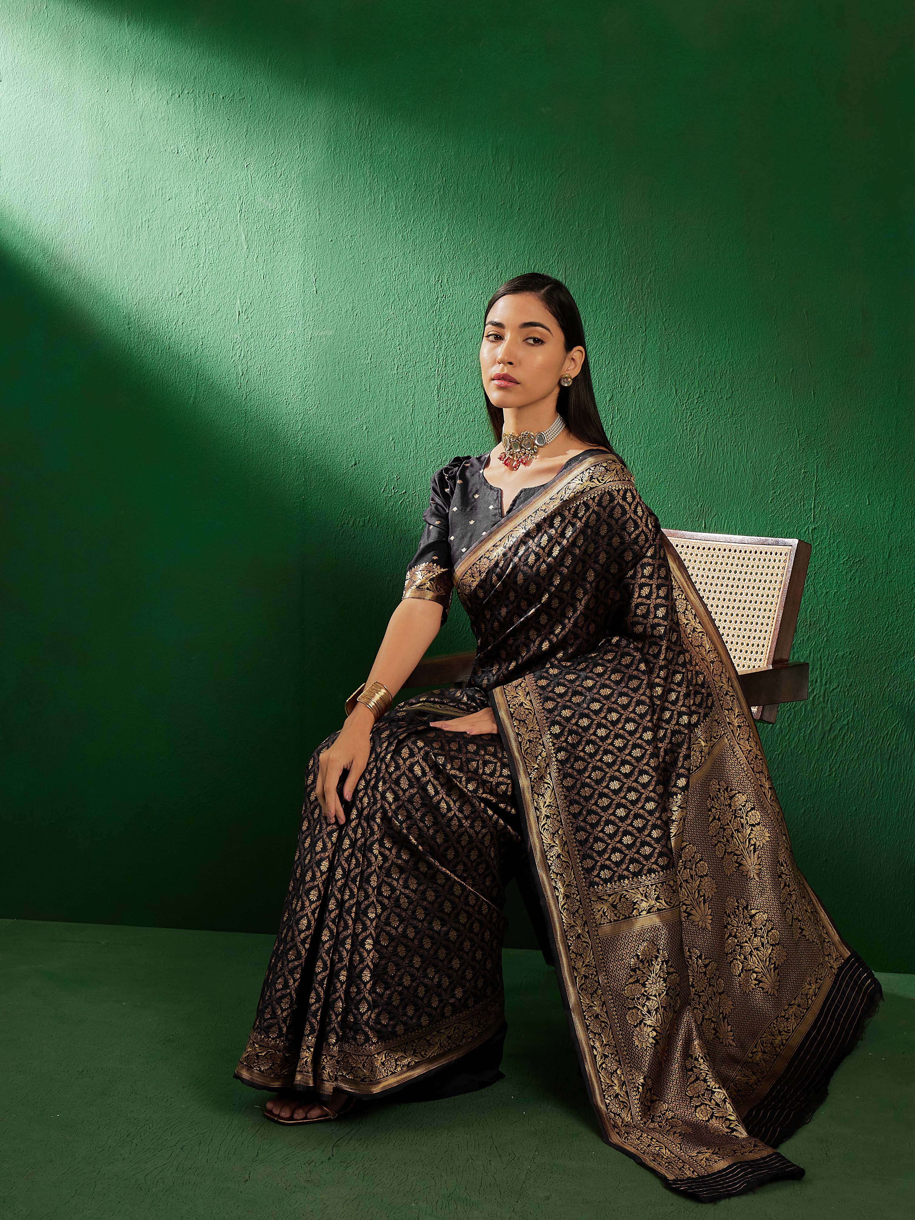 AASTHA FASHION Fashion Dream Womens Black Banarasi Silk Saree | Soft & Elegant Traditional Wear