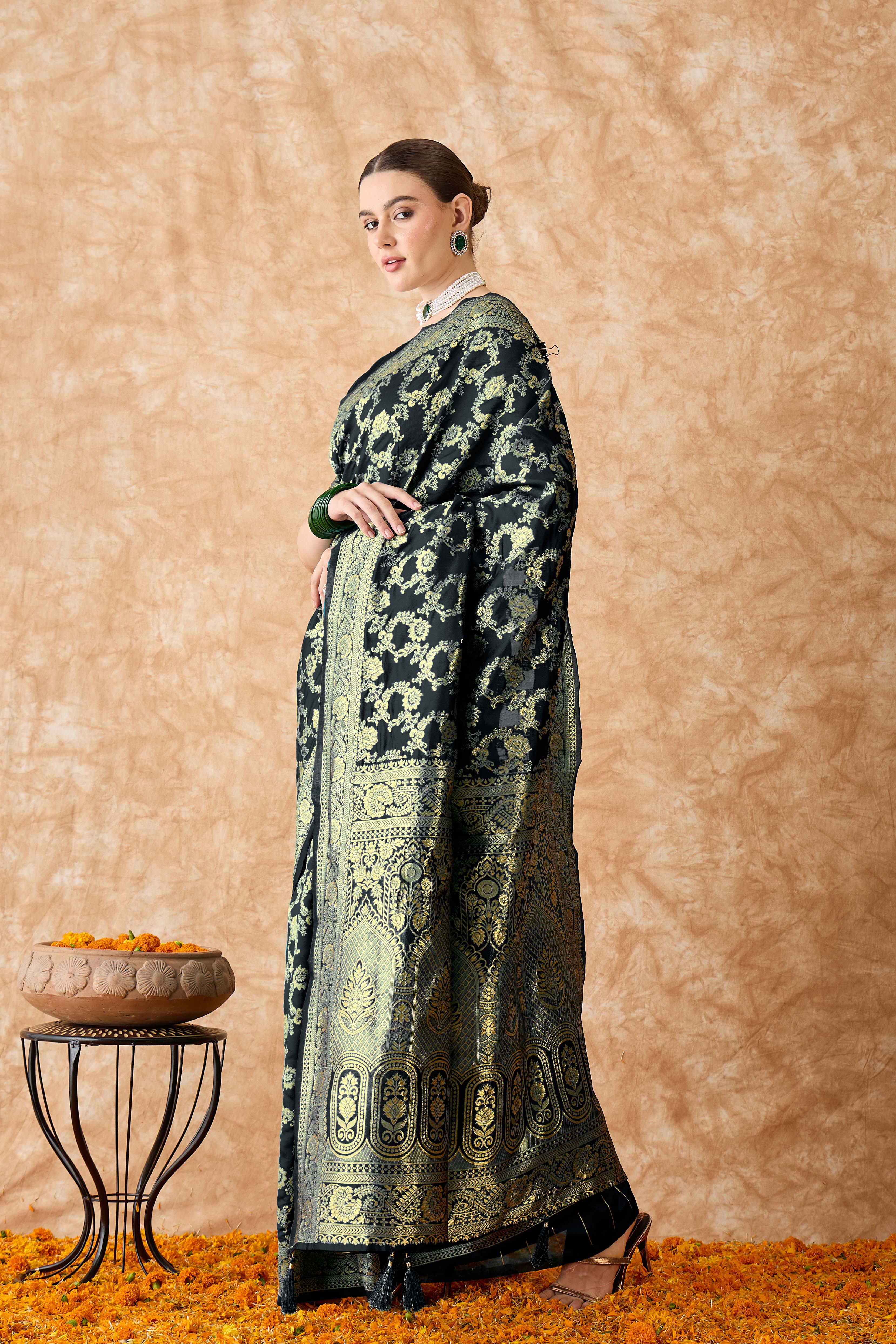 AASTHA FASHION Fashion Dream Womens Black Banarasi Silk Saree | Soft & Elegant Traditional Wear