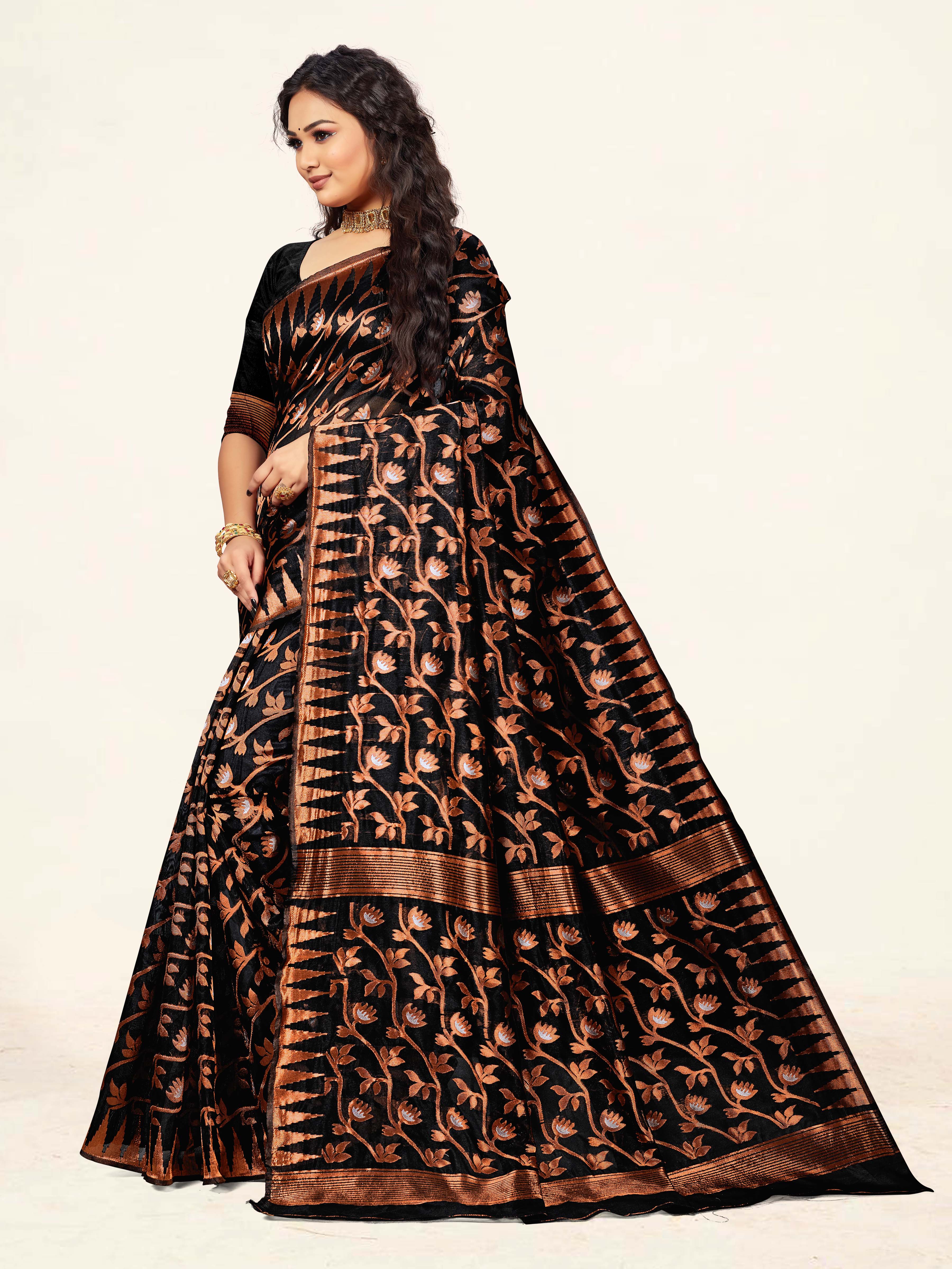 AASTHA FASHION Fashion Dream Womens Black Cotton Saree | Soft & Elegant Traditional Wear