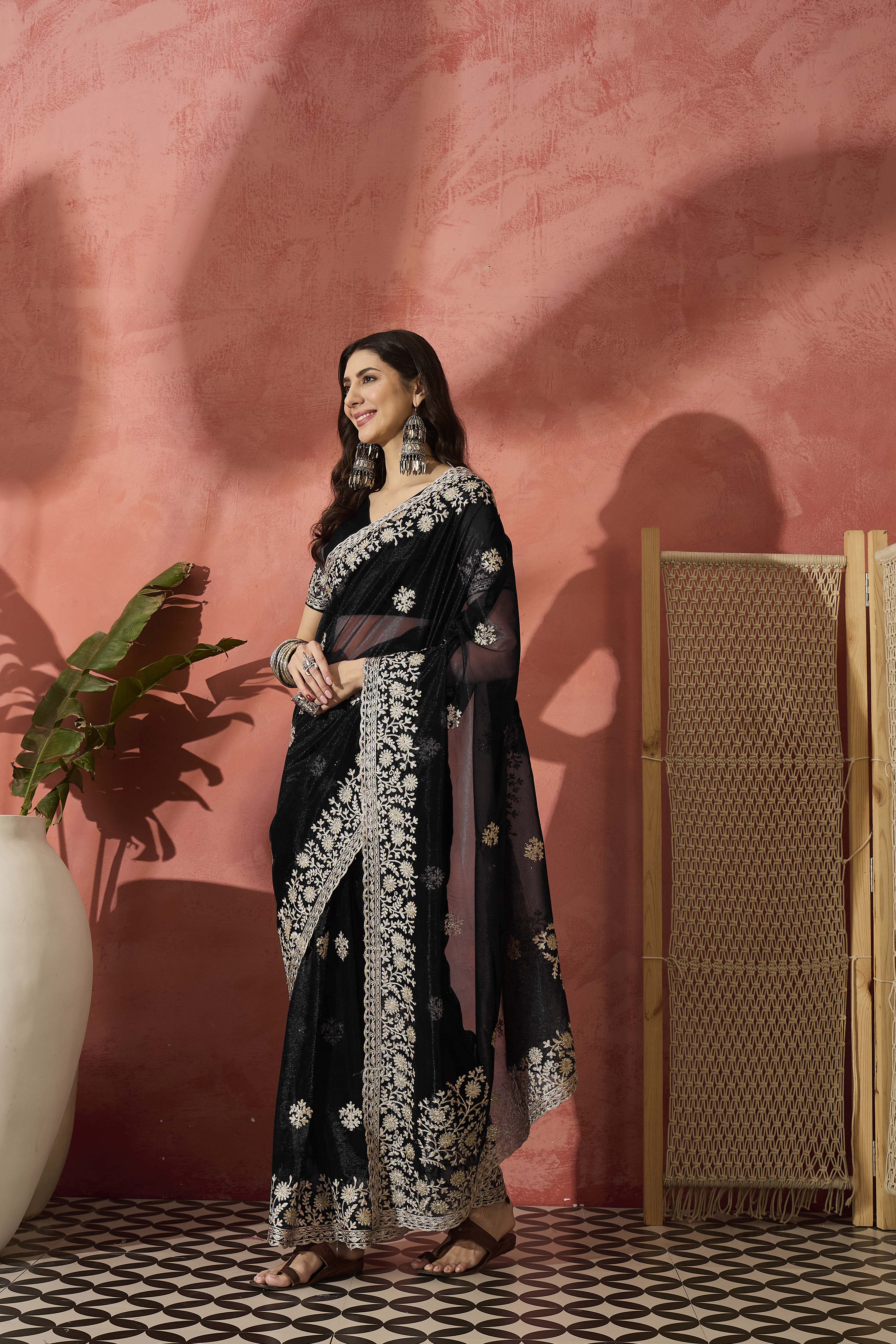 • Saree Work-Embroidered ,Blouse Work- Twil Net