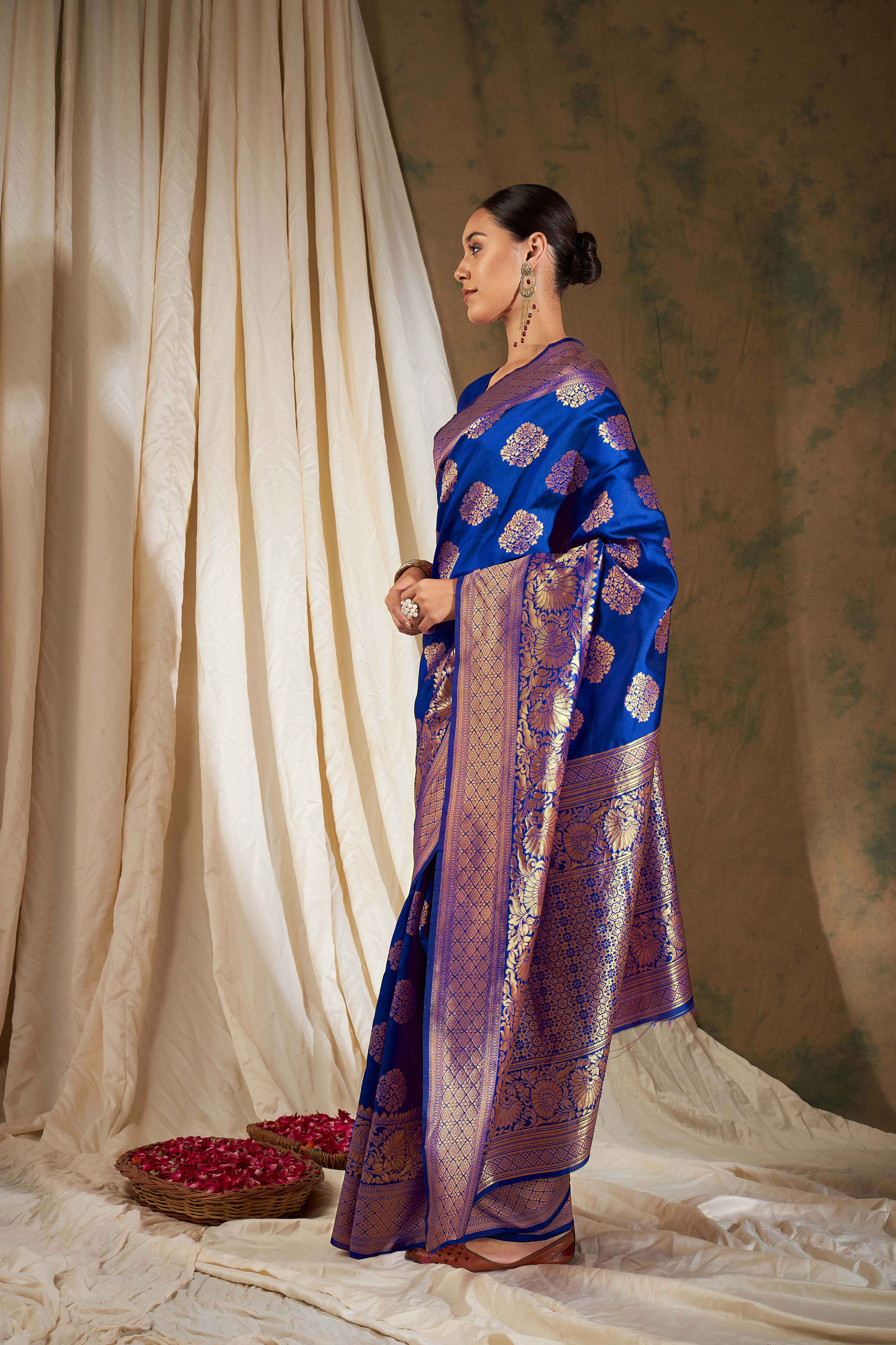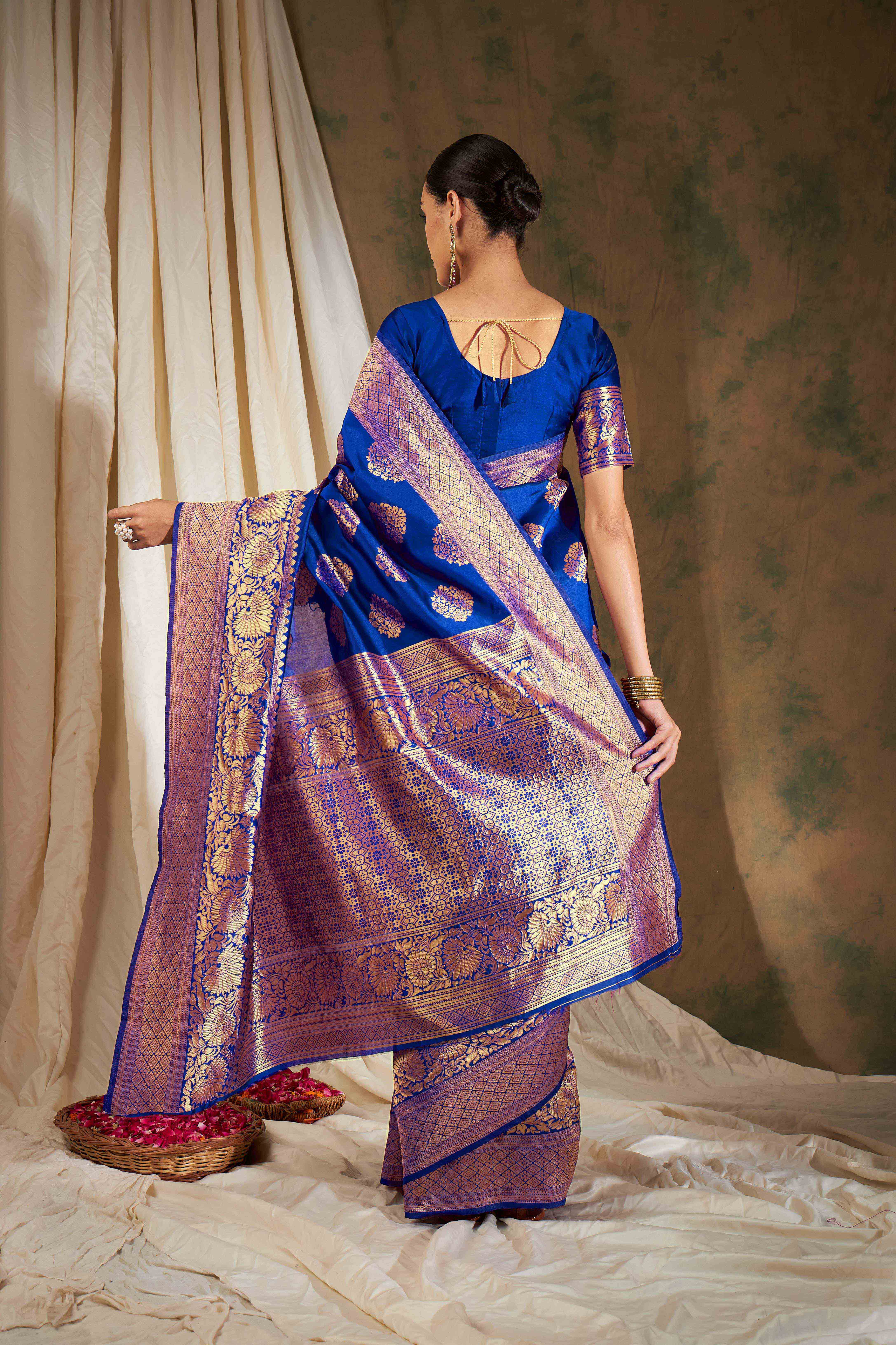 AASTHA FASHION Fashion Dream Womens BLUE Banarasi Silk Saree | Soft & Elegant Traditional Wear