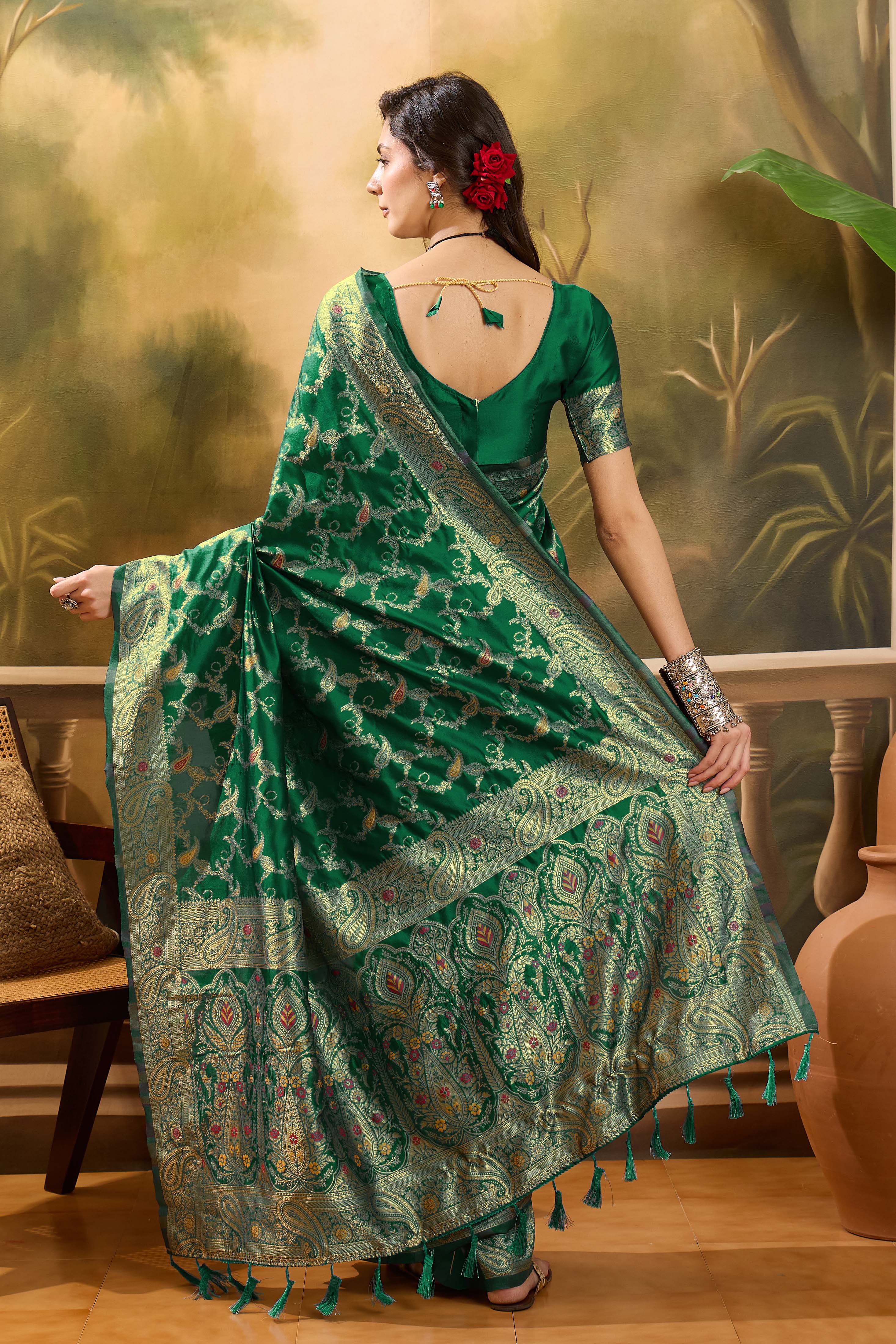 AASTHA FASHION Fashion Dream Womens Bottle Green Banarasi Jacquard Saree | Soft & Elegant Traditional Wear