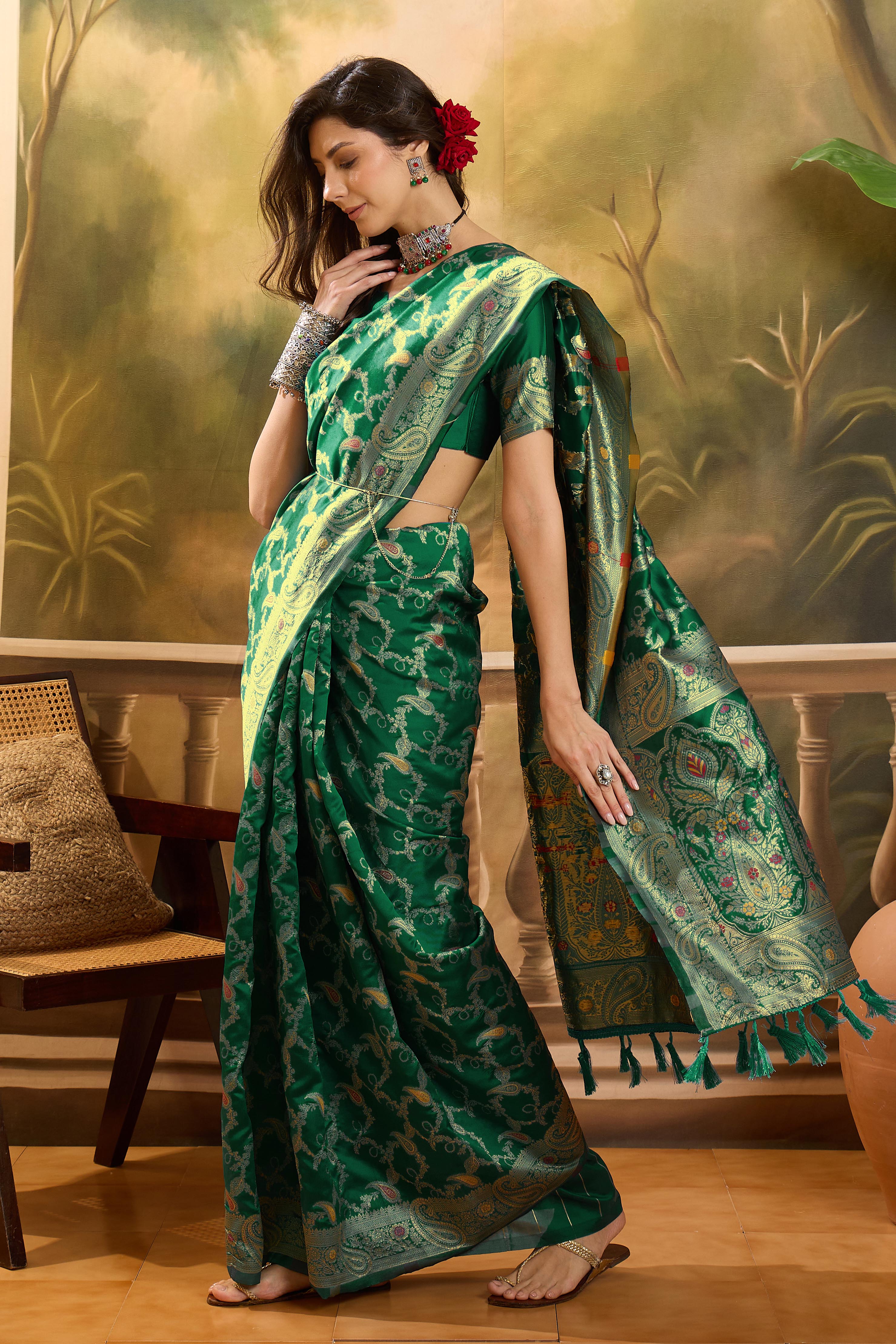 • Saree Work-Weaving ,Blouse Work- Banarasi Jacquard