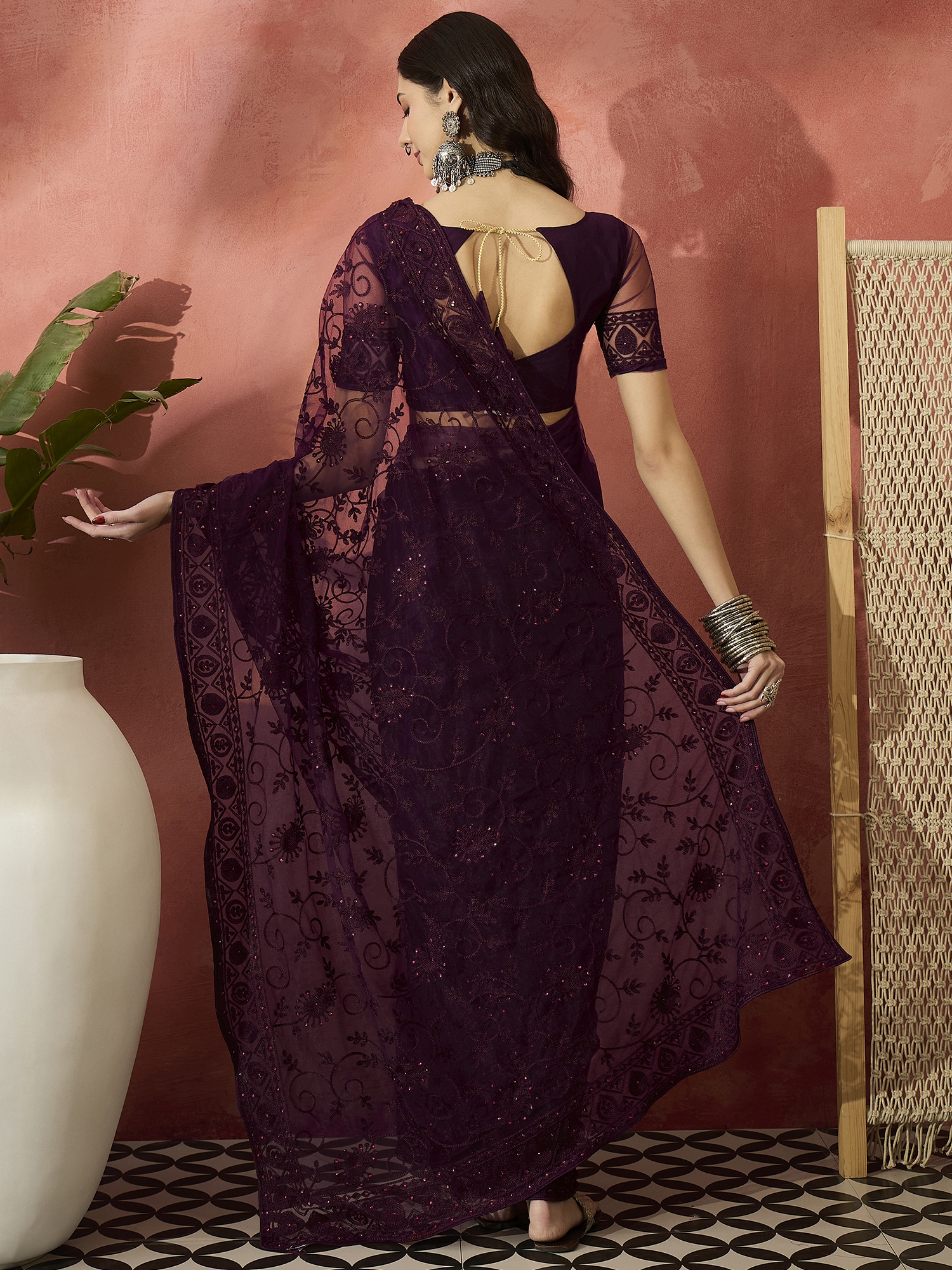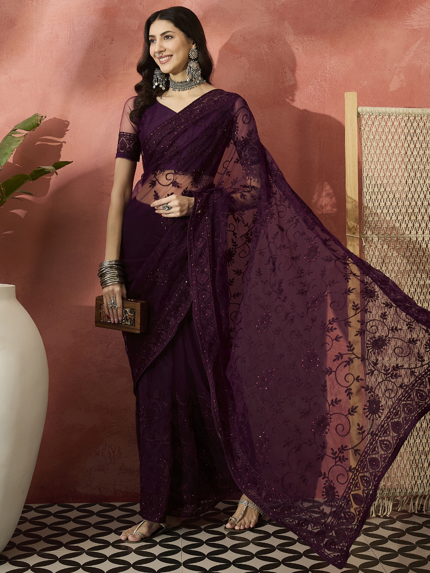 AASTHA FASHION Fashion Dream Womens Burgundy Net Saree | Soft & Elegant Traditional Wear