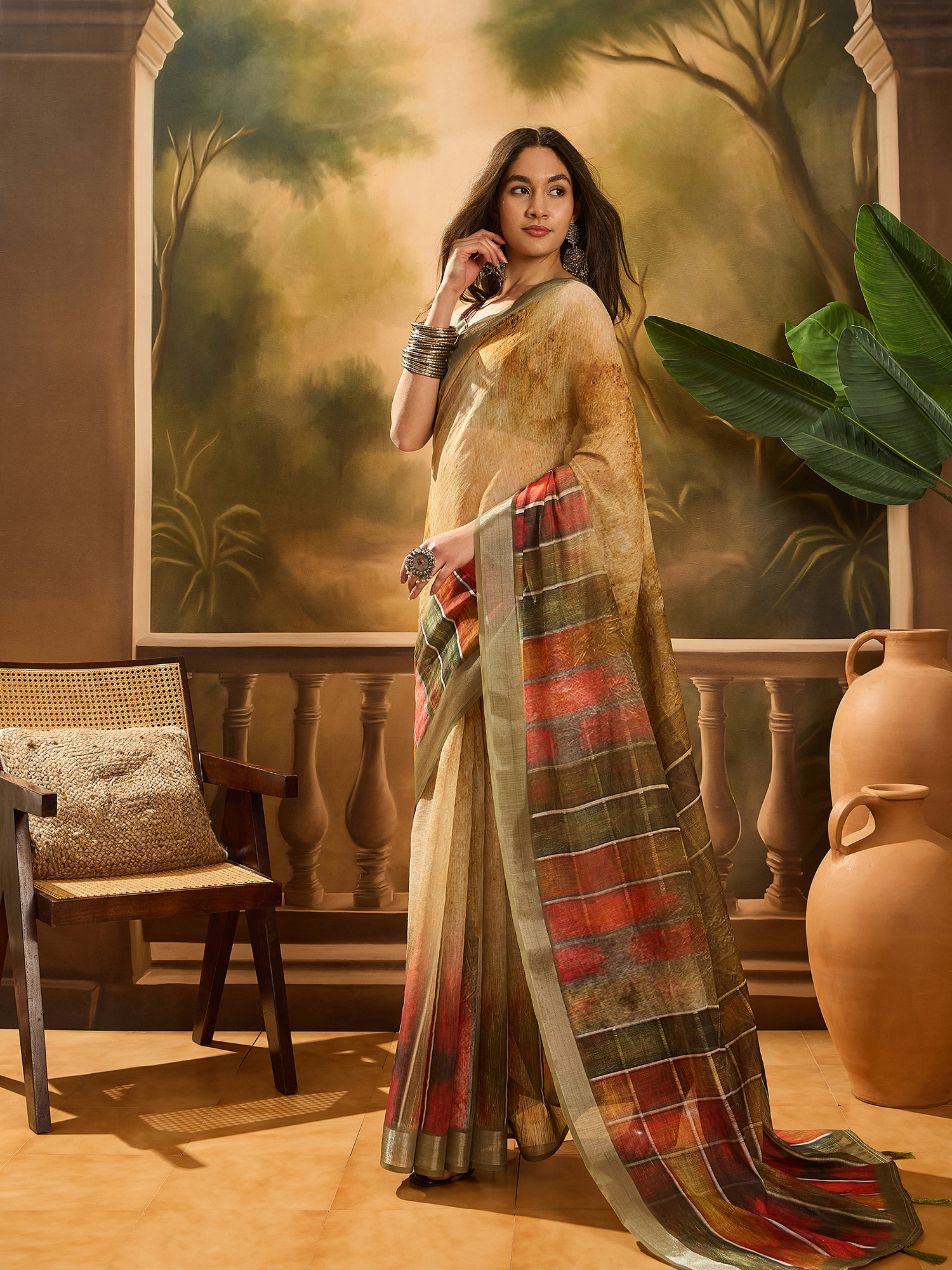 • Saree Fabric-Linen Cotton Blend ,Blouse Fabric-Linen Cotton Blend